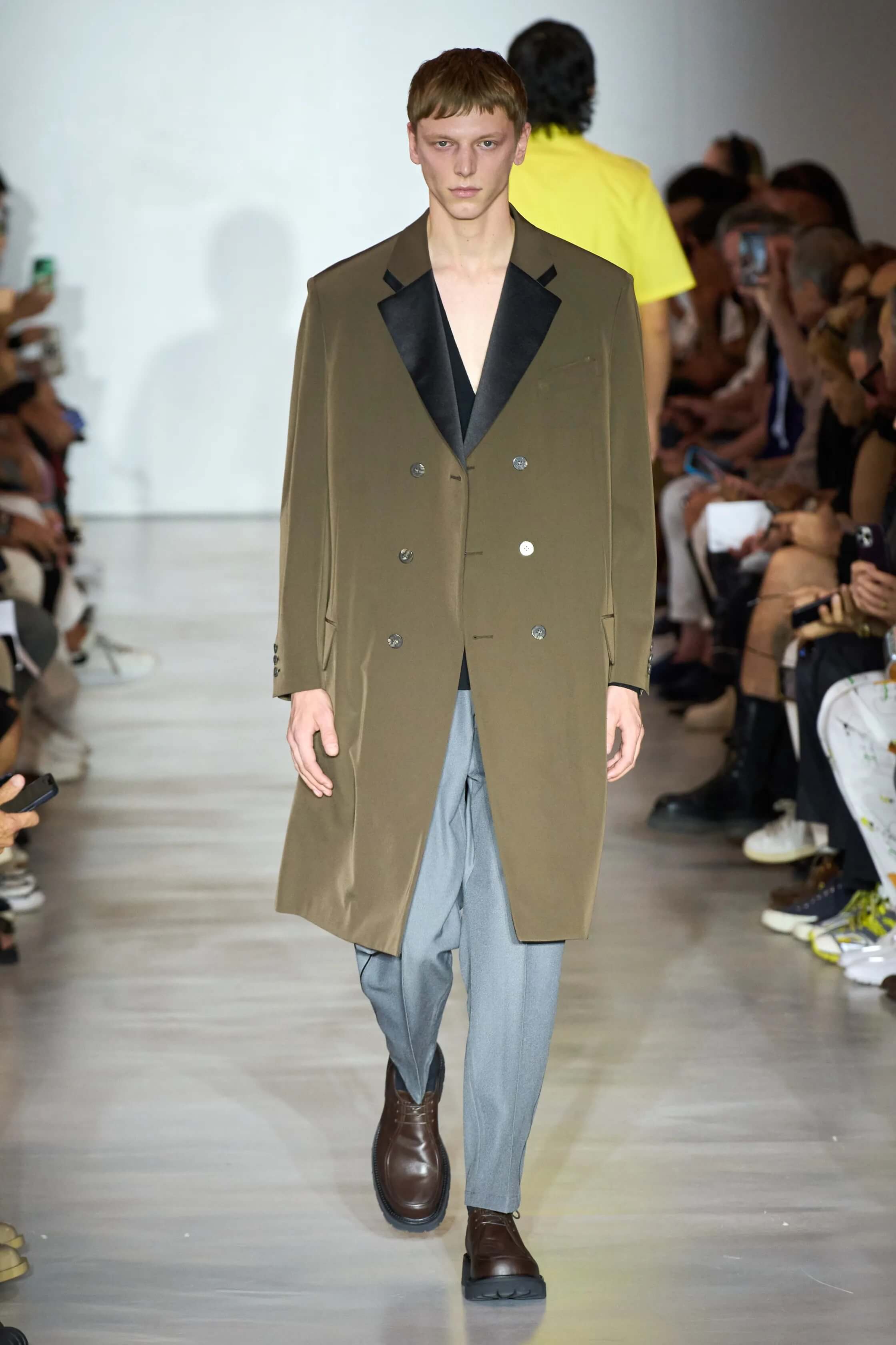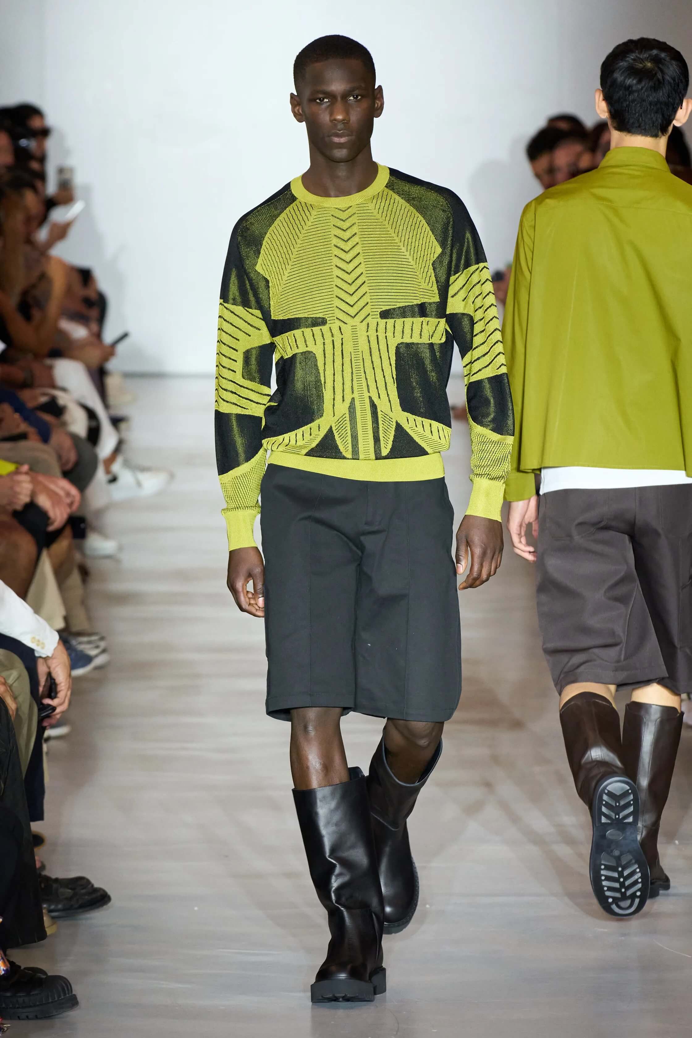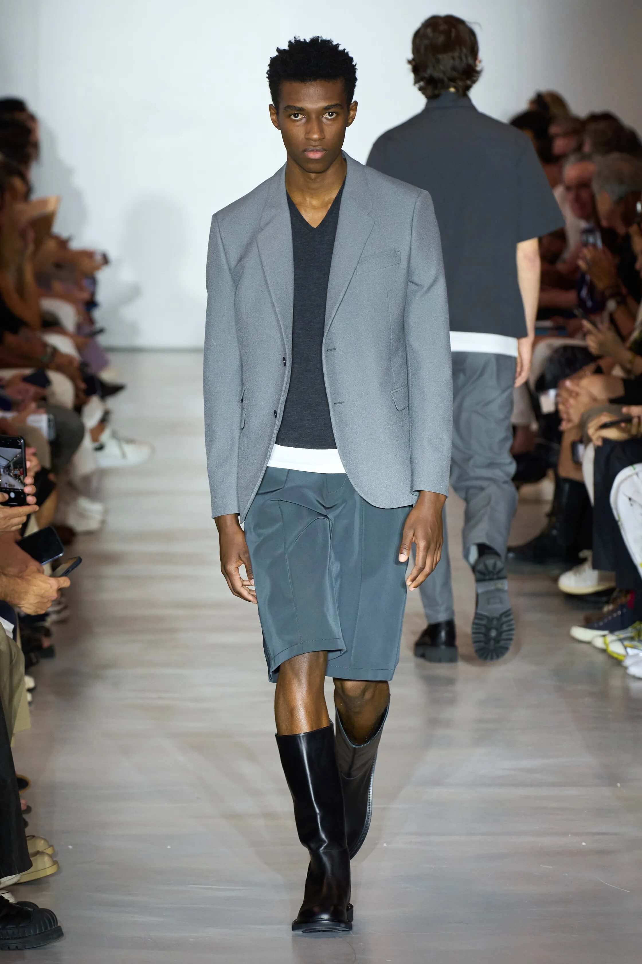 NEIL BARRET SS24 的設計植根於工作服的概念,特別是工業制服,作為其概念基石。這些單品經過精心設計和不斷並置,在功能性方面表現出色之餘,同時採用更加適合日常生活的設計理念。透過使用高品質物料,重新設計其顏色、比例和元素,轉而採用更具運動傾向和活力的顏色如淡綠色、淡黃色、淡藍色、灰色以及啡色,摒棄慣常使用的顏色,提升了這些單品的時尚前衛感,為春夏系列注入活力。