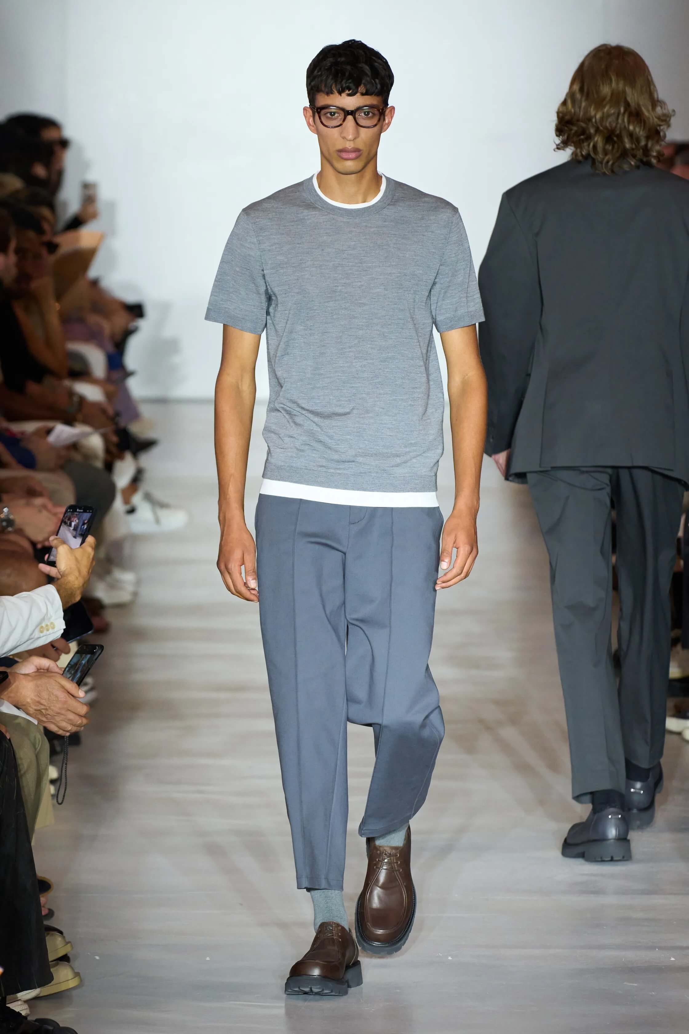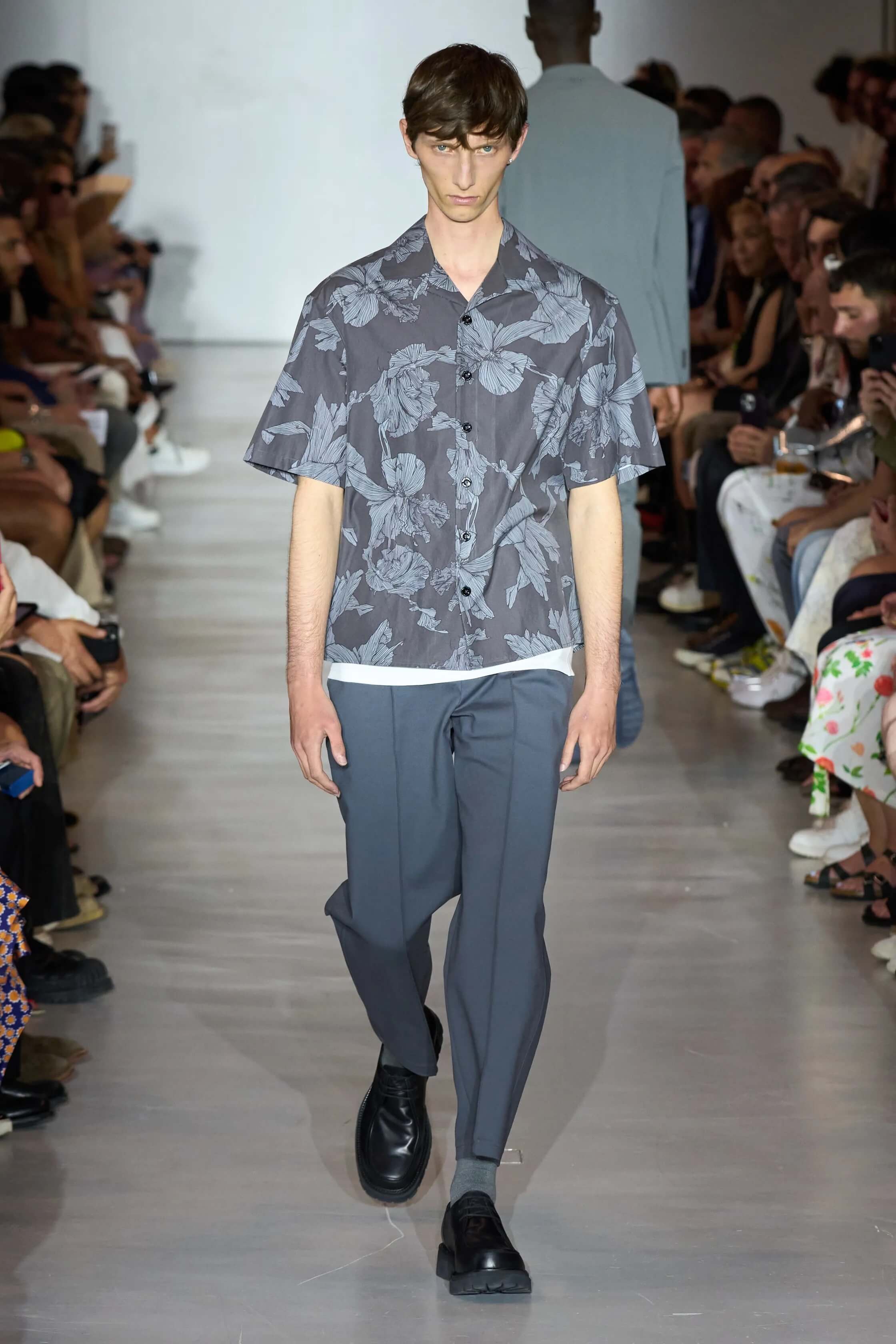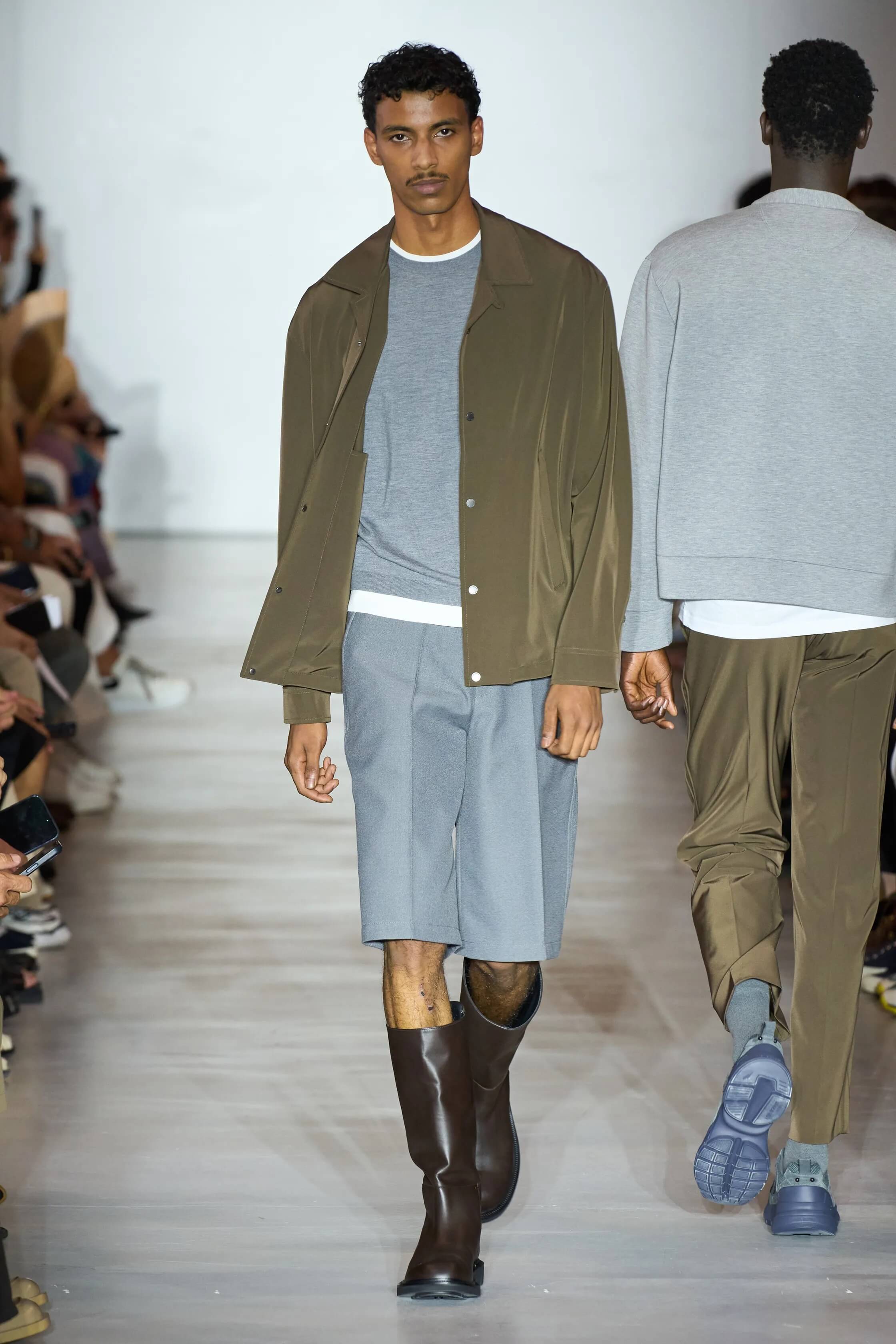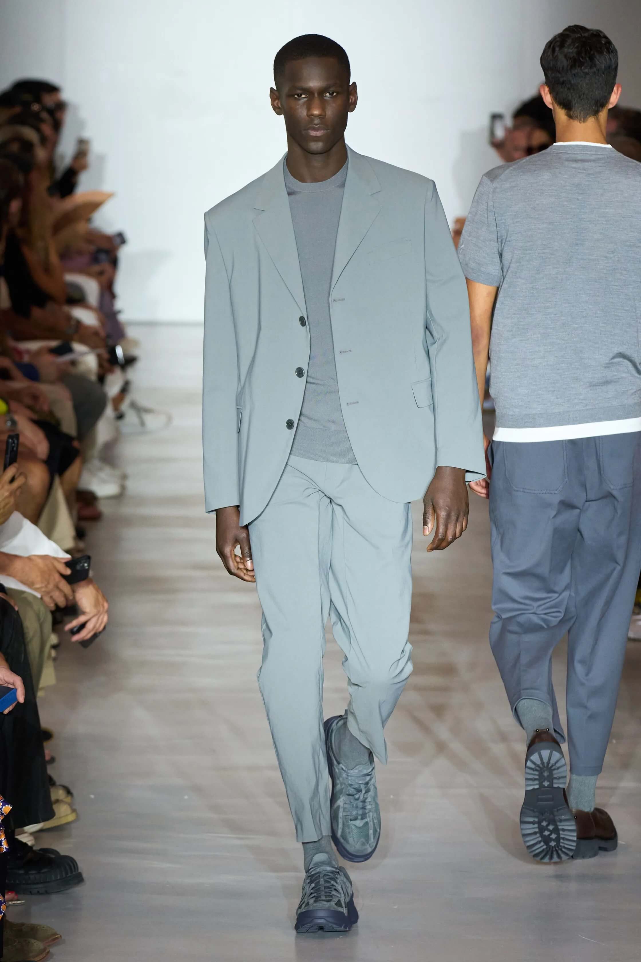 NEIL BARRET SS24 的設計植根於工作服的概念,特別是工業制服,作為其概念基石。這些單品經過精心設計和不斷並置,在功能性方面表現出色之餘,同時採用更加適合日常生活的設計理念。透過使用高品質物料,重新設計其顏色、比例和元素,轉而採用更具運動傾向和活力的顏色如淡綠色、淡黃色、淡藍色、灰色以及啡色,摒棄慣常使用的顏色,提升了這些單品的時尚前衛感,為春夏系列注入活力。