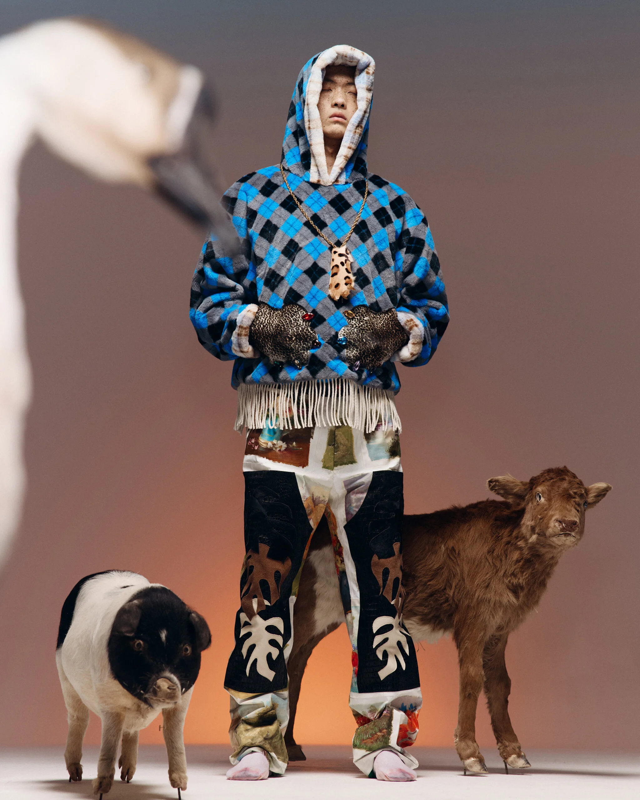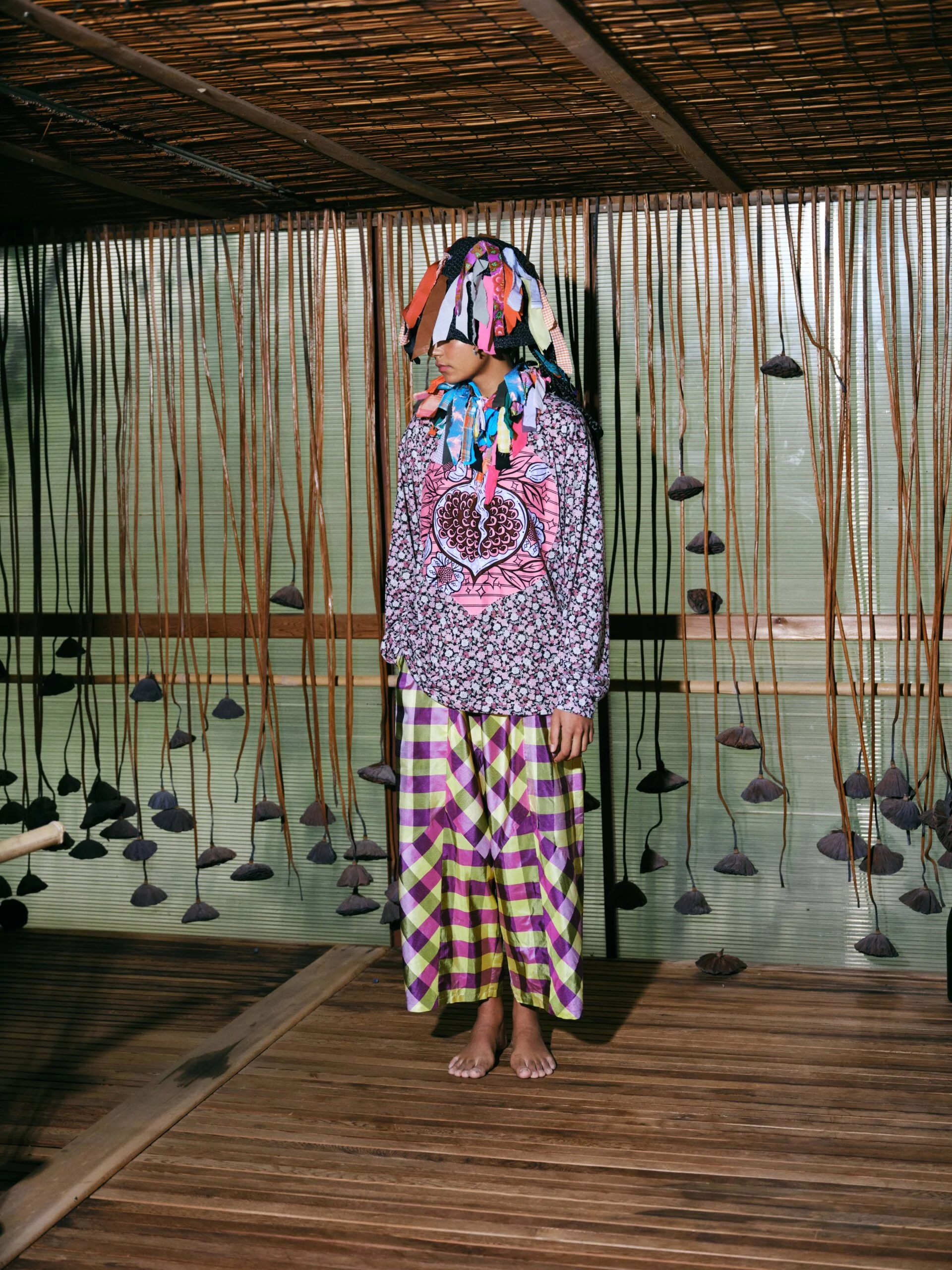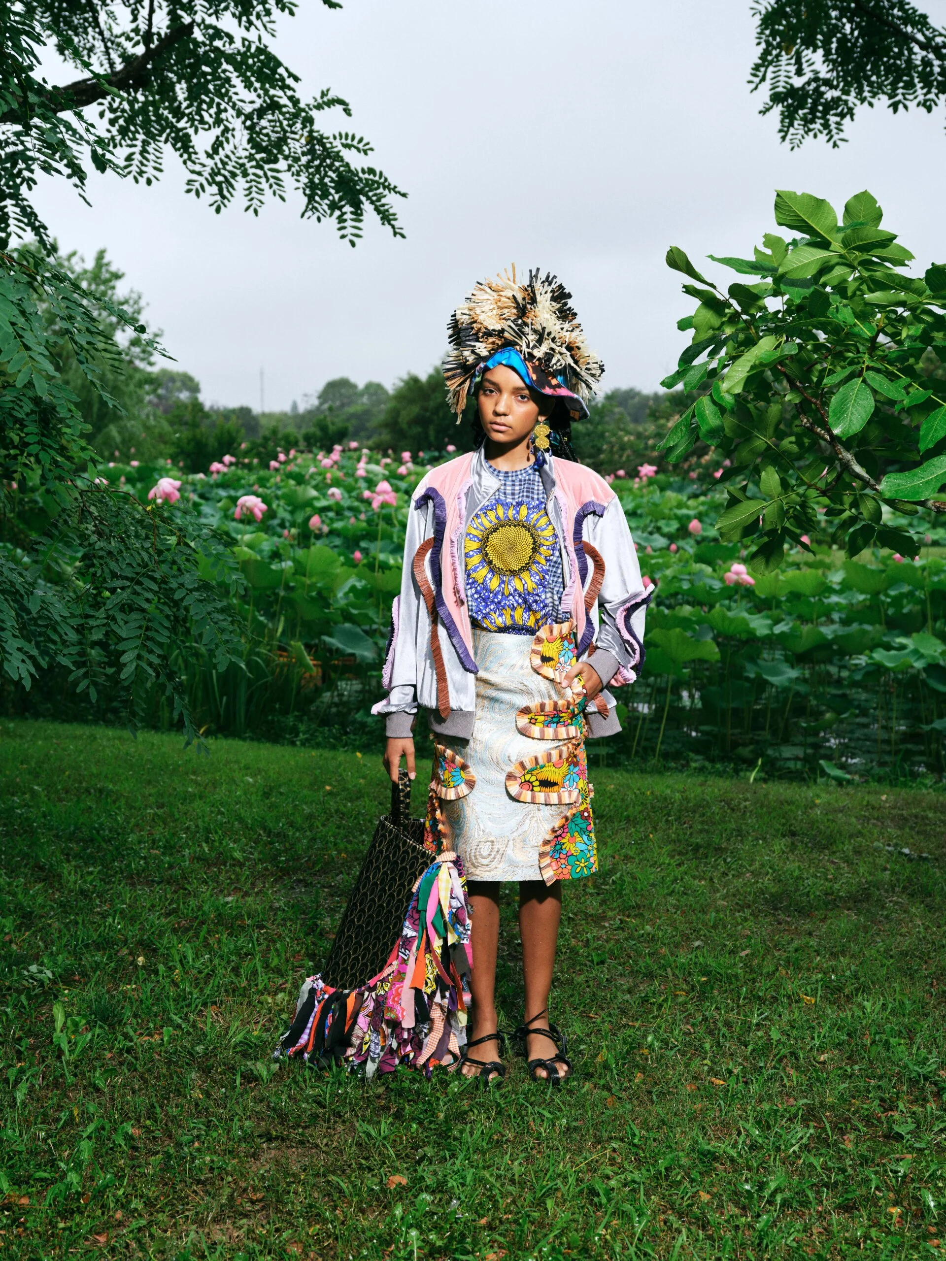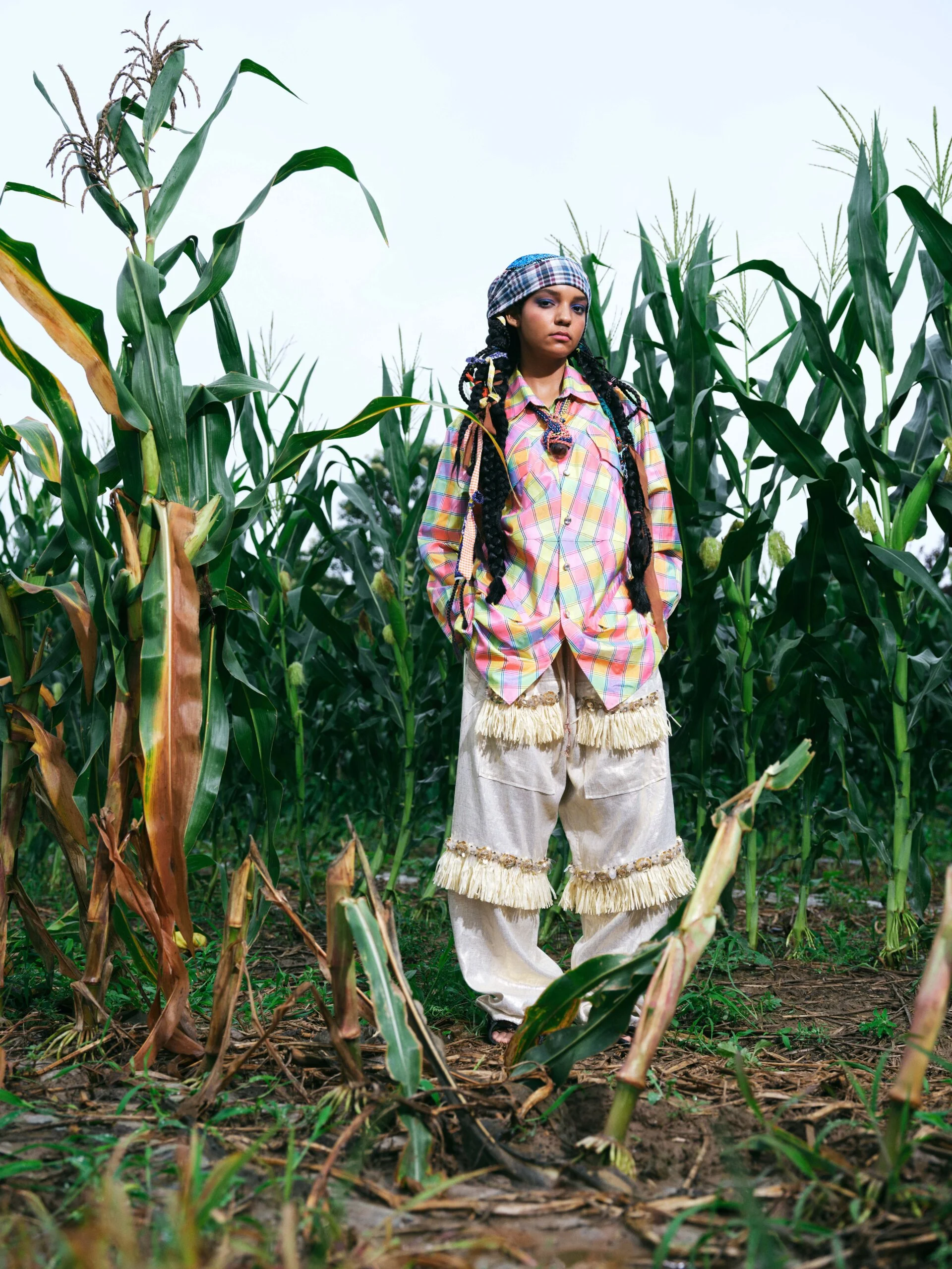 這一季因為覺得做 FASHION 有點累,就想做一些看起來和時尚毫無關係的東西。SS26的名字叫「HEART LAND」,靈感來自「鋤禾日當午,汗滴禾下土」這句詩。在我看來做衣服也是一種勞作,讓我去思考勞作的價值。我做了很多 TIE-DYE 的 T-SHIRT,因為我覺得TIE-DYE痕跡很像播種的種子,有某種規律性,同時也是通過手工勞作完成的印花。我還做了一些像汗水一樣的配飾,把勞作的汗水變成像珍珠一樣的存在。LOOKBOOK 是在上海崇明島拍的,那是一片由建築師轉行耕作的農田,有一種逃離城市、尋找生活平衡的感覺。