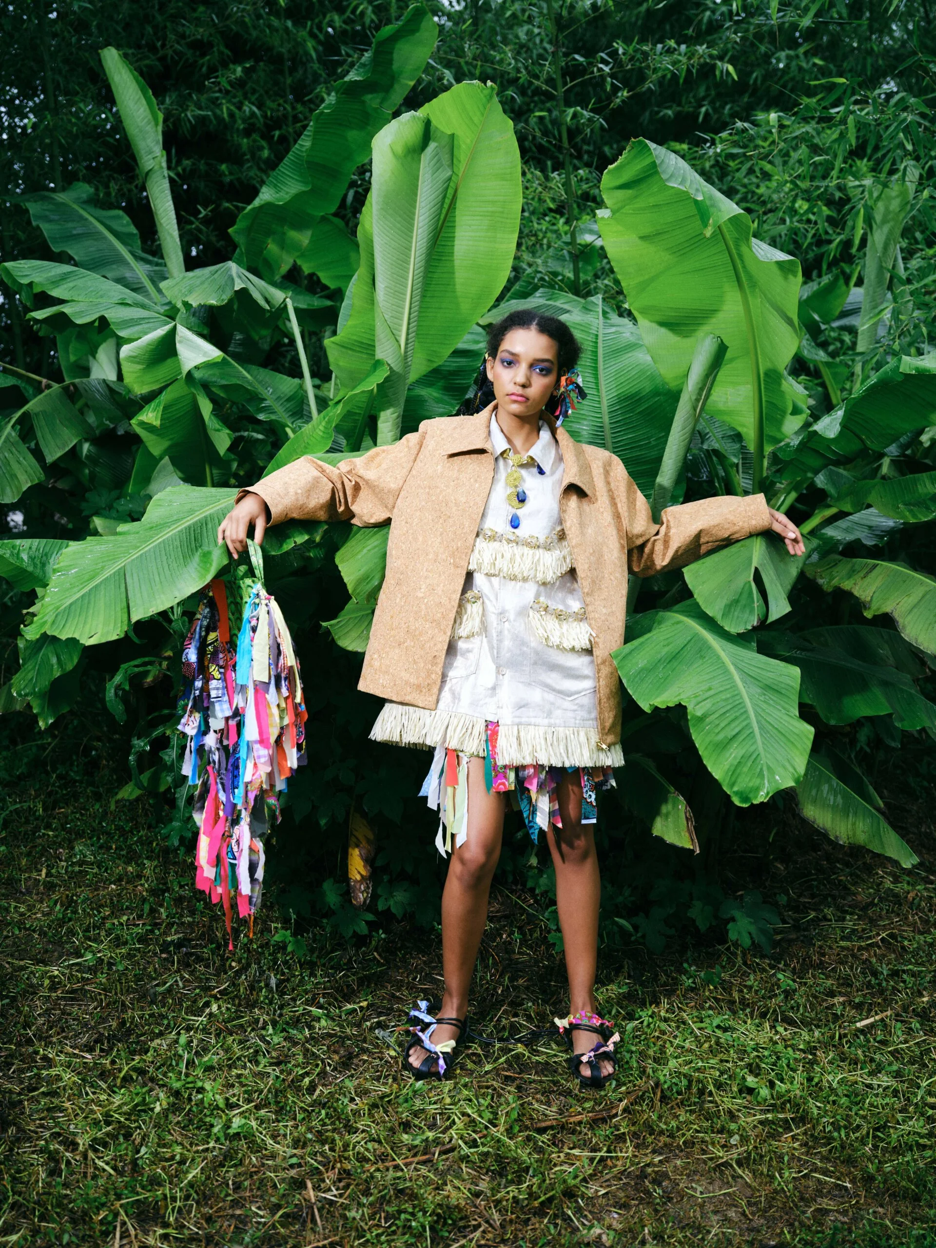 這一季用了很多像稻草、拉菲草一類的材料。當然,一方面是因為農田、耕種這個主題。但我覺得有趣的是,稻草其實又是一個非常「南法」的象徵,會讓人聯想到高級休閒、度假感。所以我覺得這個材料非常兩面,一邊是勞作、土地,另一邊又是某種精緻生活的想像。