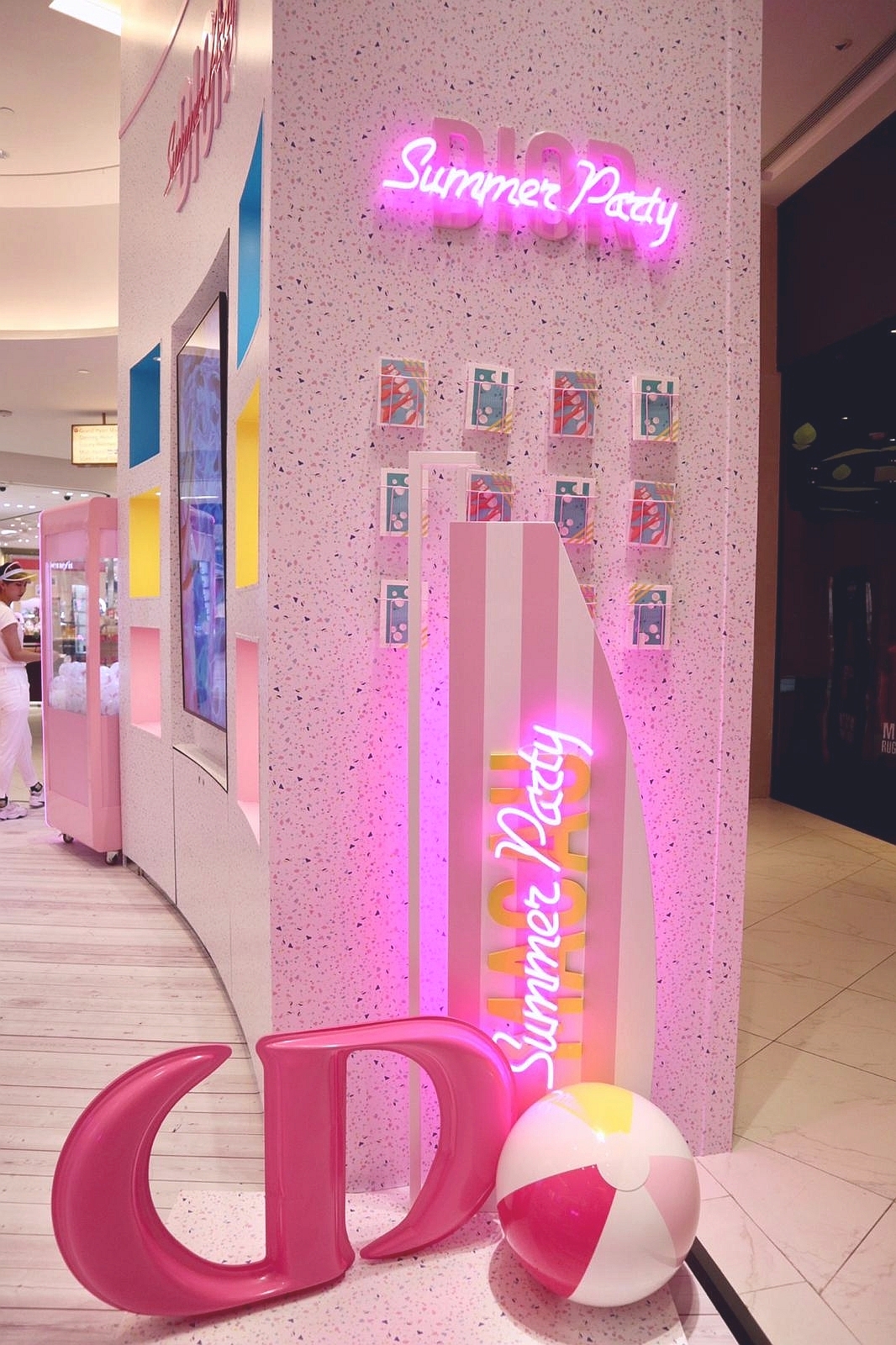 pop-up store比一般概念店有更多新鮮玩意,Summer Party也不例外。除了陳設與店內音樂讓人有開派對的感覺外,店內限定產品也真正體貼了我們在夏季經常外遊、晚上外出派對的需要,例如 Dior Addict Lip Glow Trio 就是三款適合極度夏日的清透色調,感覺年輕活潑;而Dior首款香氛、1947年誕生的 Miss Dior 也以其清新花果香成為店內另一主角。