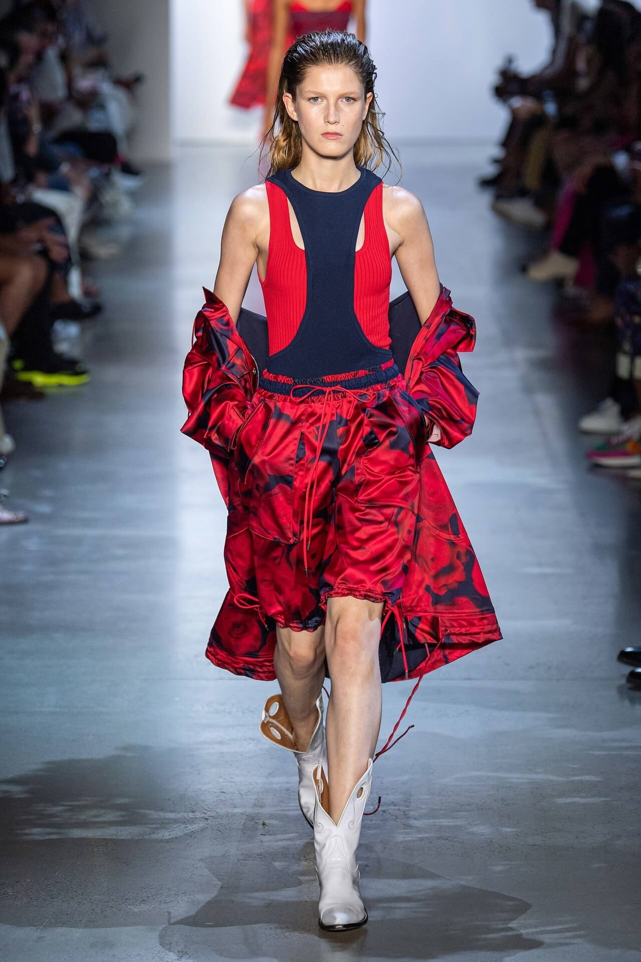 這次Gurung 的系列主題是有關美國的時尚史,因此他早就國家的服裝文化作出不少研究。我們不難在這季看到與「繁榮」有關的情緒元素:玫瑰印花、澎湃的羽毛、精緻的鉤針編織和色彩豐富的紮染,都毫不收斂的極為絢麗,表現了他對美國的迷戀。