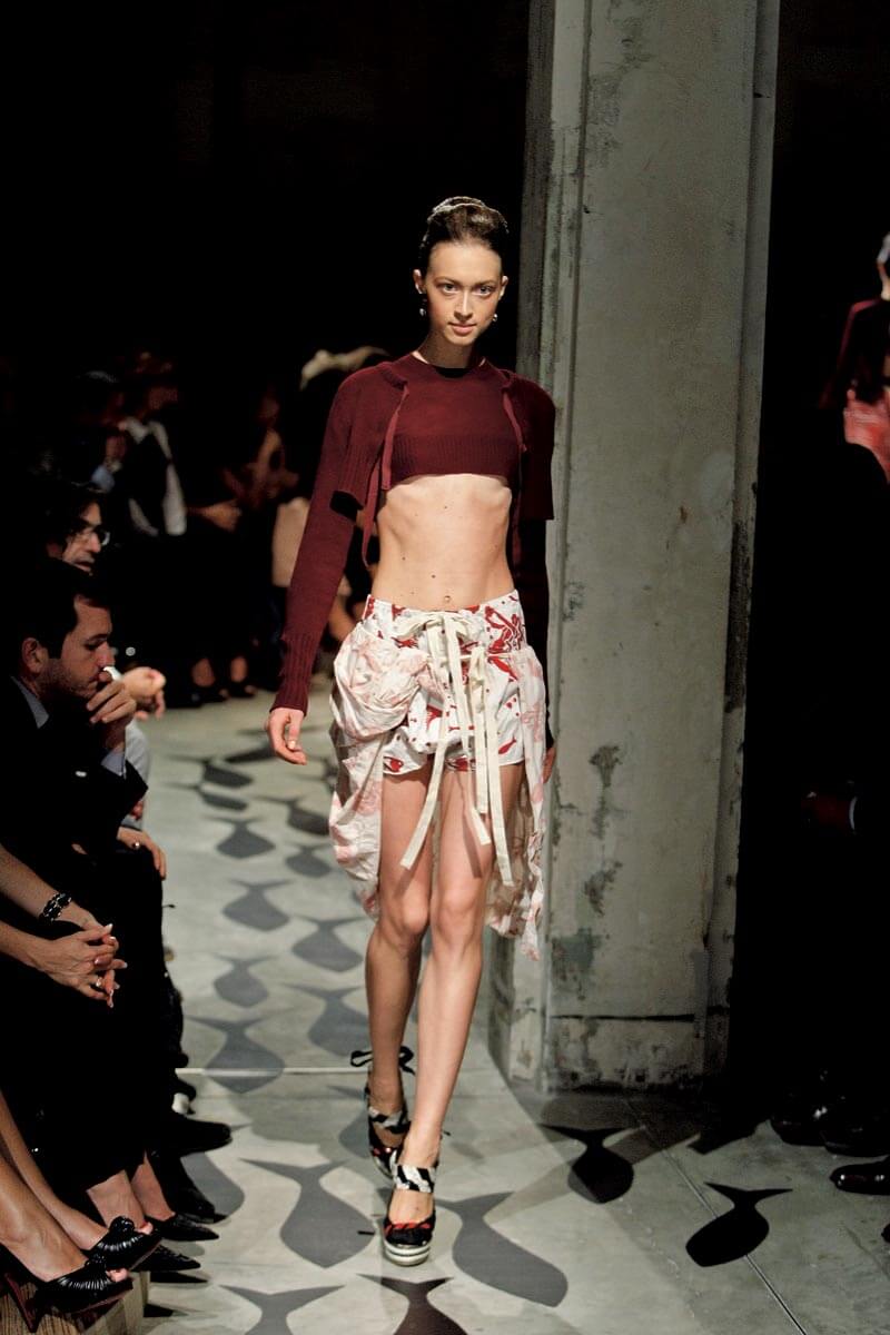全個時裝界都在談論那雙近 8 吋高、連模特兒也駕馭不了、最後弄至倒地的高跟鞋。雖然那雙 Prada 高跟鞋,及那綁有蝴蝶結的小襪子讓人舉步維艱,但 Miuccia Prada 意欲透過超高高跟鞋,及用非傳統 glamorous 布料配上性感剪裁衣物、以探討性感為何物的系列,依然扣人心弦。有意拉起的不規則裙子、縐摺索帶胸衣、短至不能再短的針織及數碼圖案衣物,並加上最古典優雅髮型化妝;一向於時裝界走得最前,去年一手帶起老式優雅的 Prada,又把大眾領至另一個值得探討的時裝領域裏去。