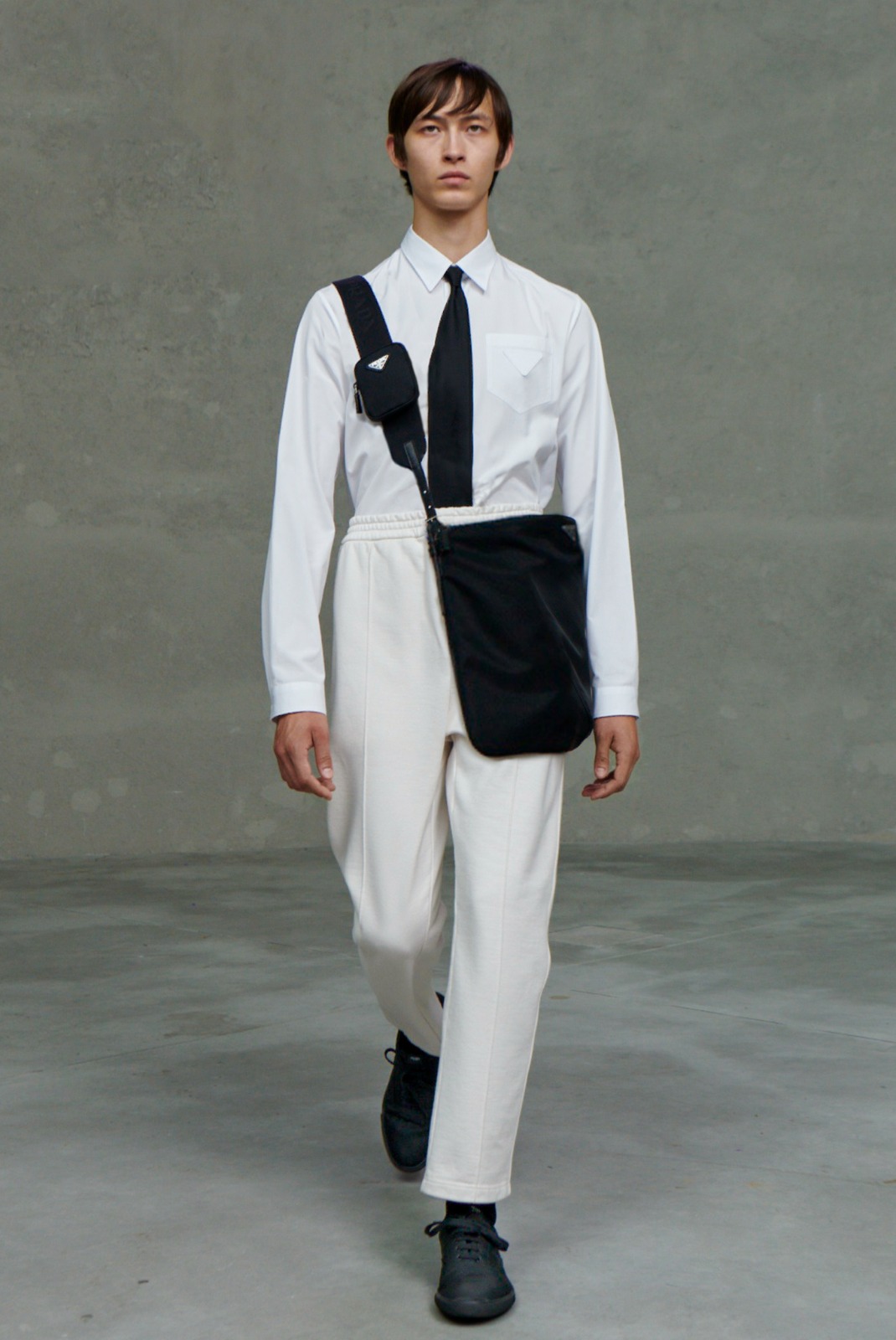 打破一場虛擬時裝騷的可能,是PRADA 2021 MULTIPLE VIEWS最大的看點。一直以來觀眾在電腦前看到的時裝騷相對格式化,鏡頭離不開遠中近鏡的剪接。如此做法讓觀眾能飽覽時裝系列的FULL LOOK,時裝騷一氣呵成的調度,不過距離感始終與座上客無法媲美。