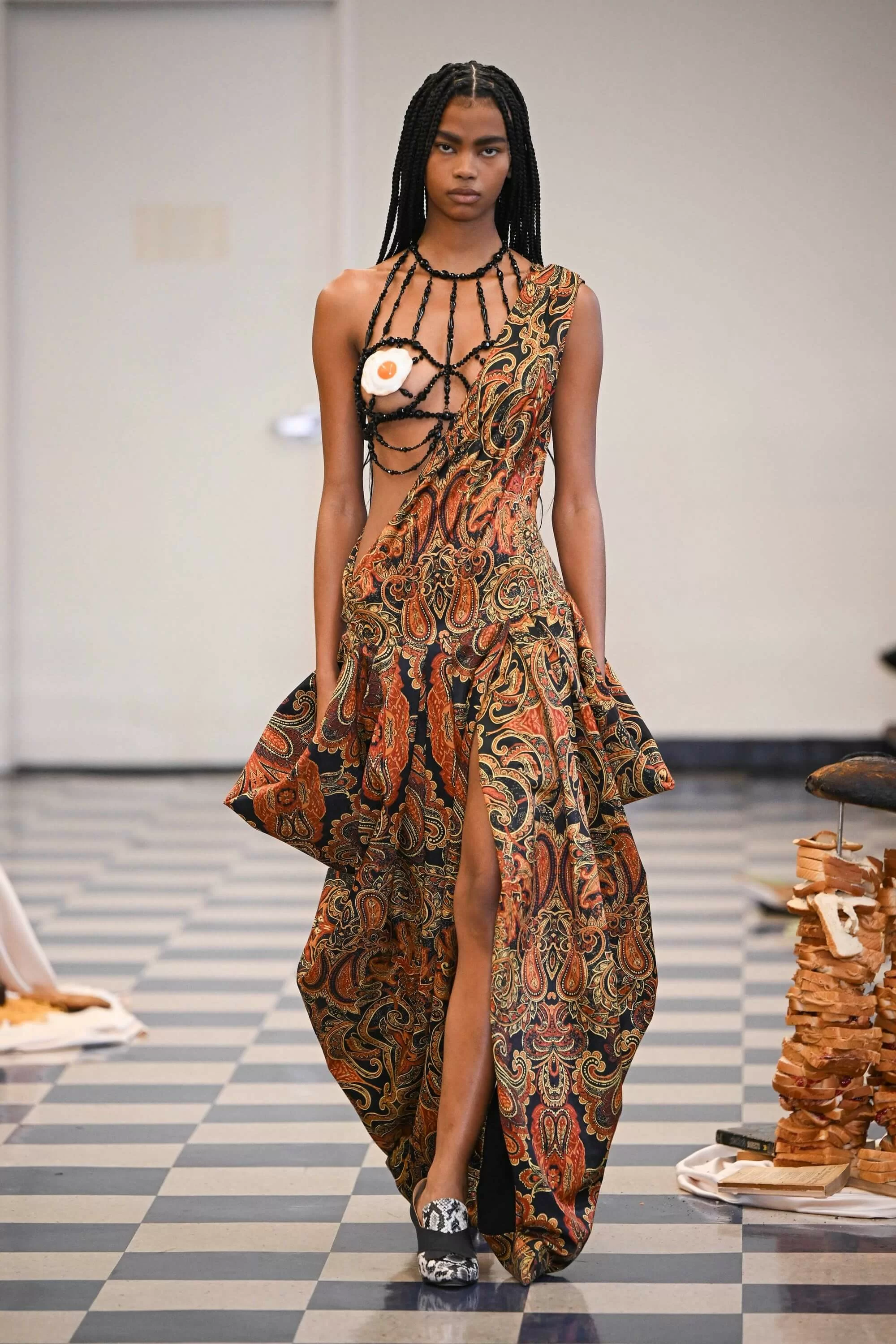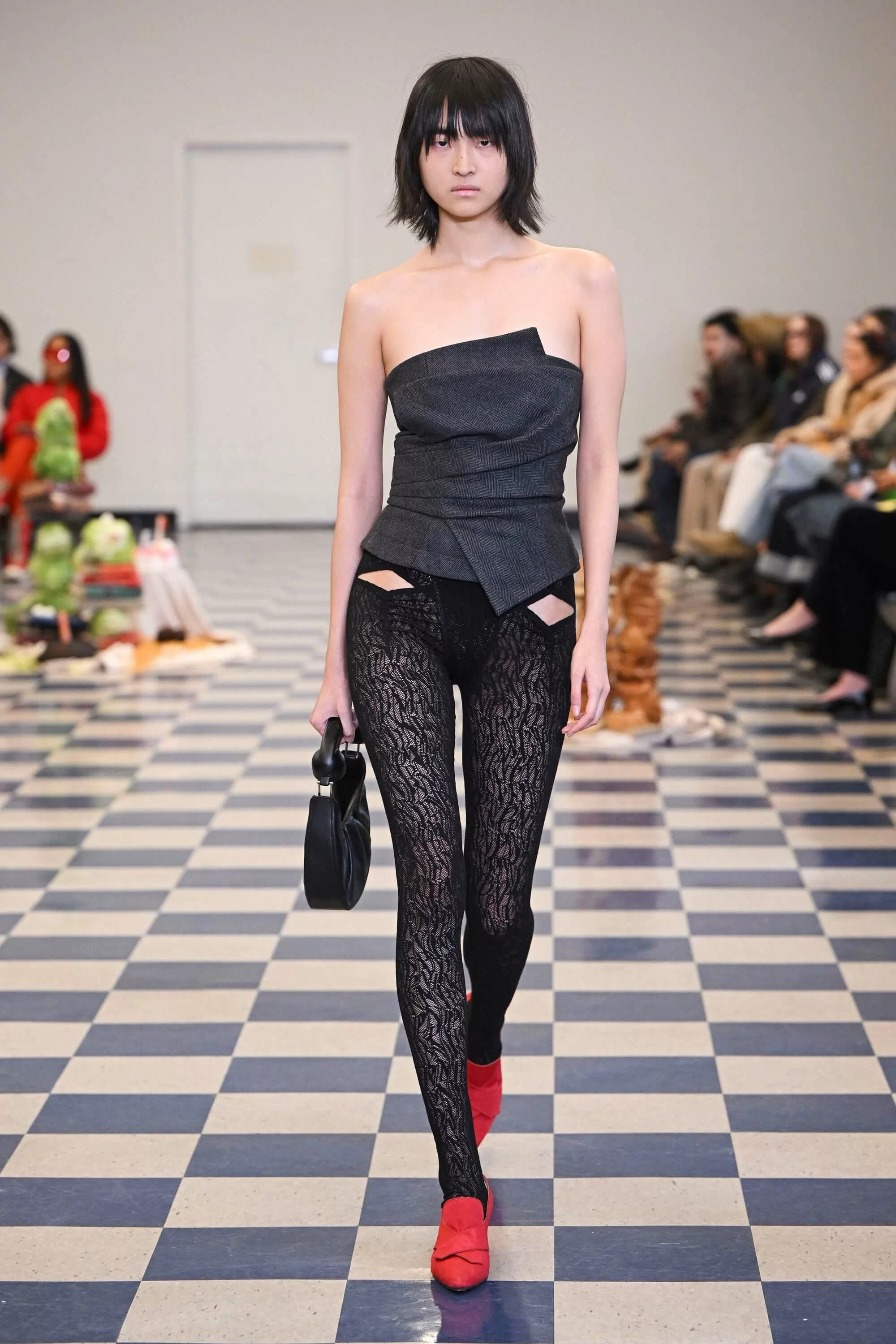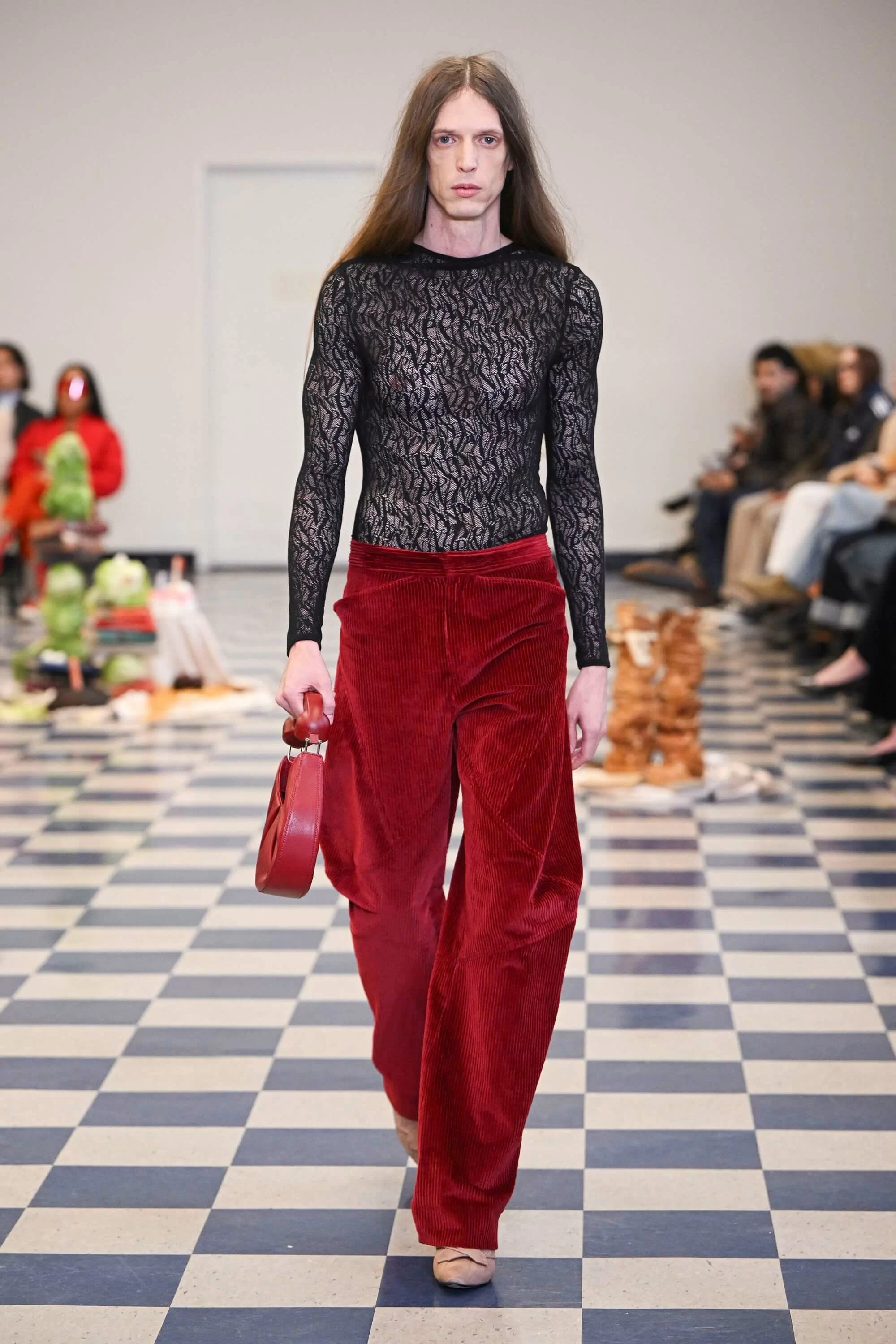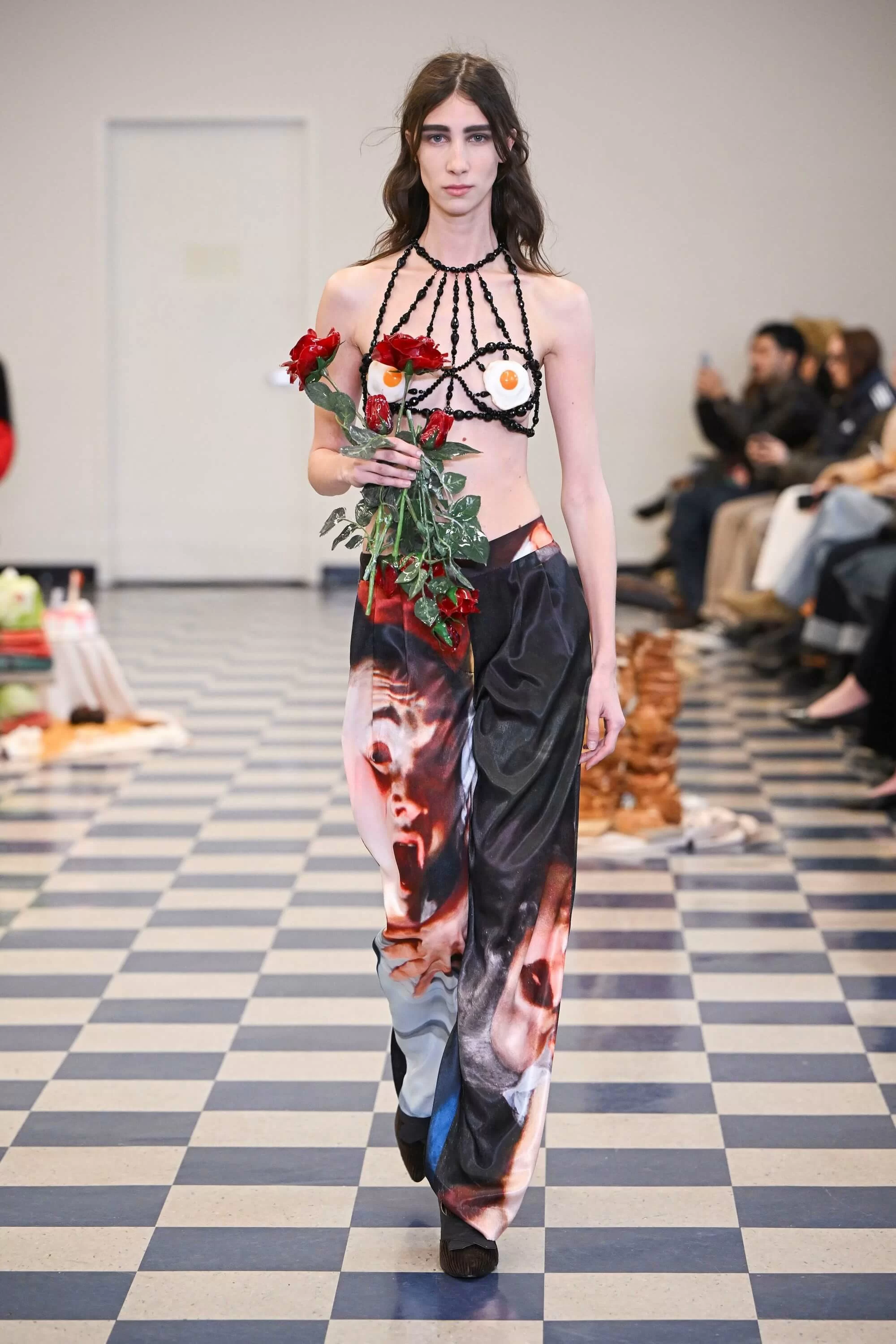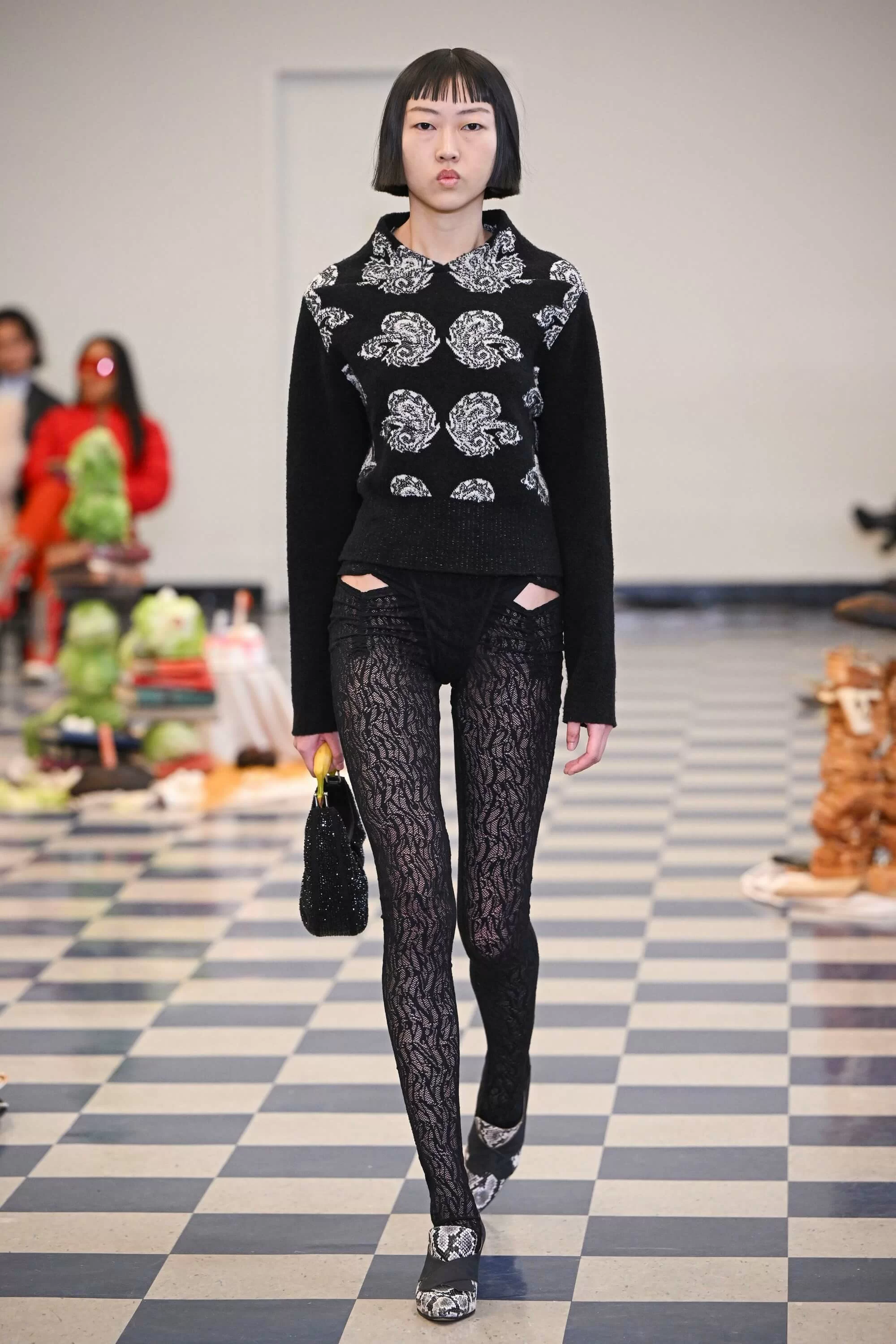 品牌的 2023 秋冬系列於市中心的經濟區舉行,靈感來自 DAVID CRONENBERG 的恐怖電影《DEAD RINGERS》,電影講述一對孖生的婦科醫生共享人生和女人,後來卻因其中一個愛上了一位有特殊子宮的女性而產生分歧的故事。CARLY 深受當中女性的身份權力象徵啟發,同時戲裏面的服裝和色調也體現在系列上,更出現了手機聽筒的手袋。其他的元素包括把 GASPARE TRAVERSI 1783 年的畫作《THE OPERATION》放大成為印花的晚裝,和品牌標誌性的立體雞蛋、新加入的玫瑰花細節。