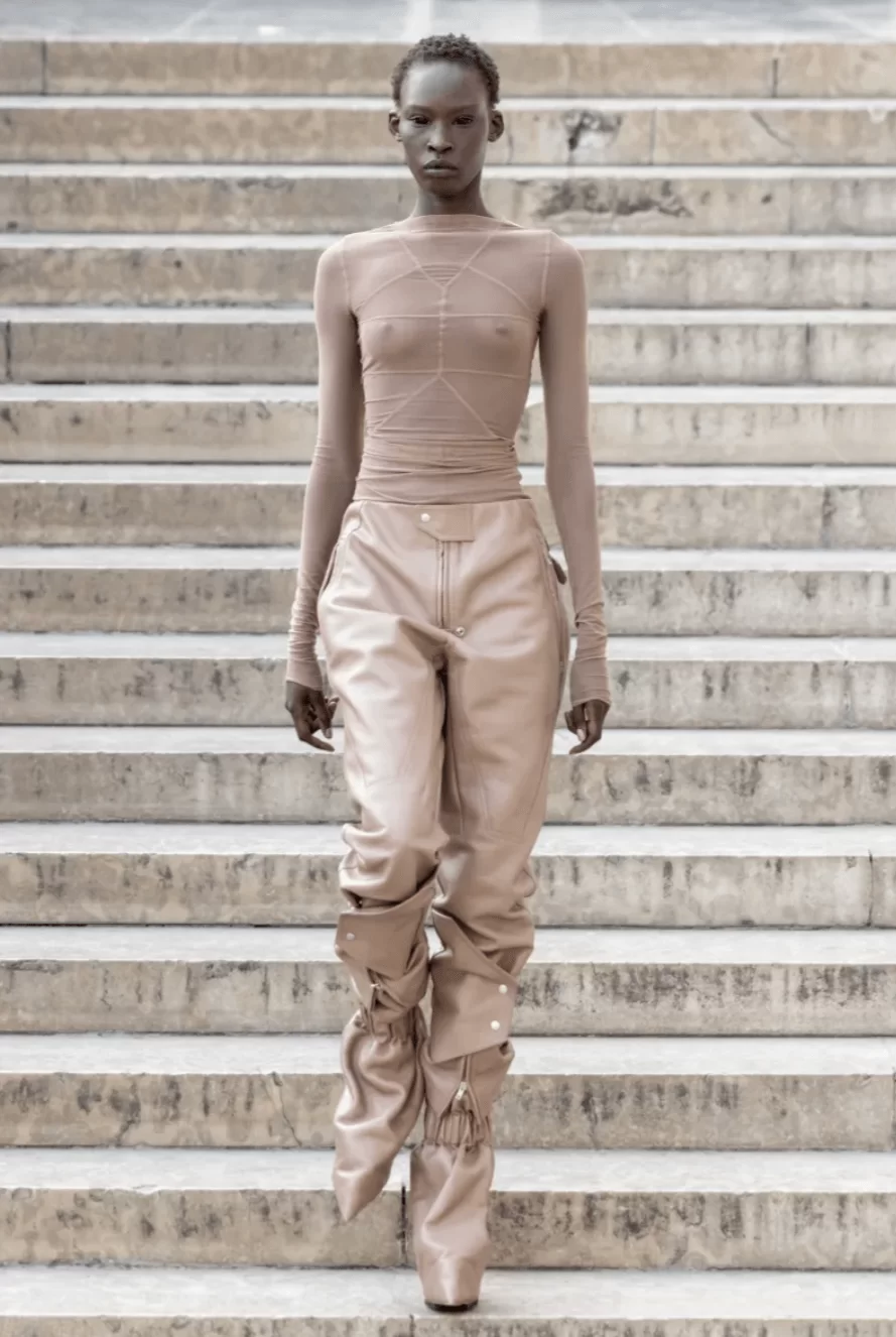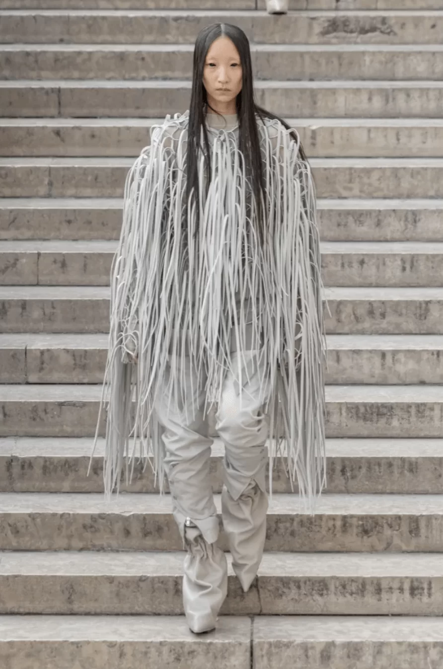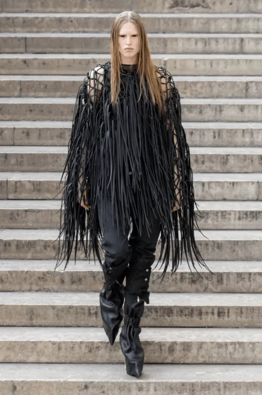 這場充滿視覺衝擊的大秀既像是一場神秘的宗教儀式,也像是一次堅韌的前行——它不僅突破了傳統時裝秀的框架與模式,更是 RICK OWENS 在表達淨化、重生與擁抱脆弱的行為藝術。