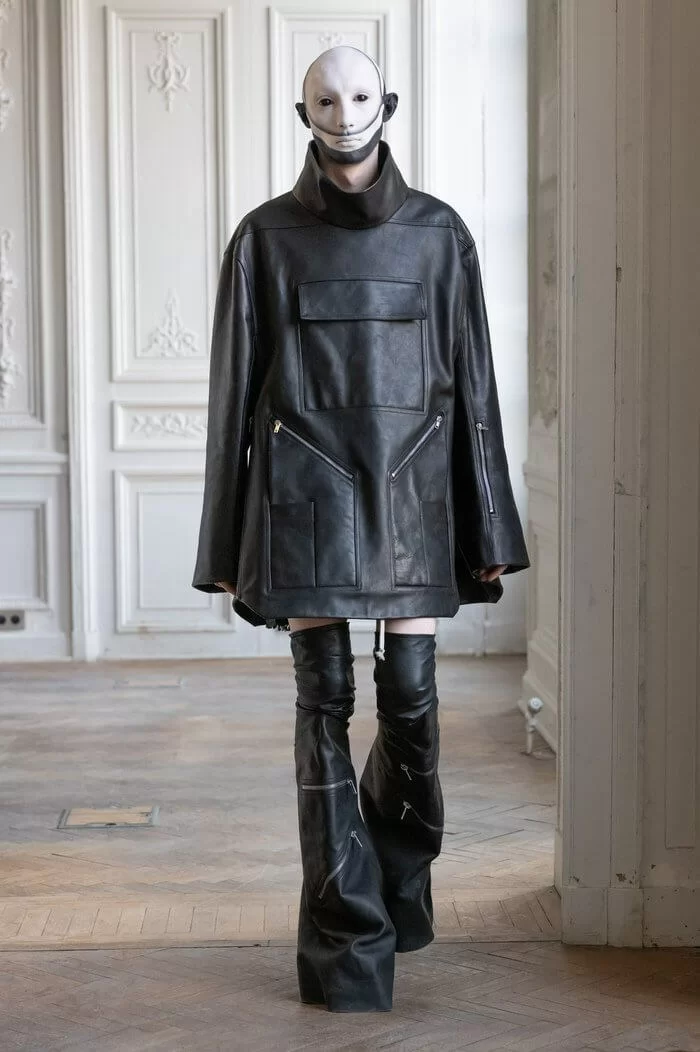 「現今人們對『美』似是有著千篇一律的追求,特定的性取向,特定的臉型,特定的身型,然而這些都是對差異的不寬容。」FW24 系列不僅包含了 RICK OWENS 對傳統的顛覆,也是他對這些特定標準的挑釁。