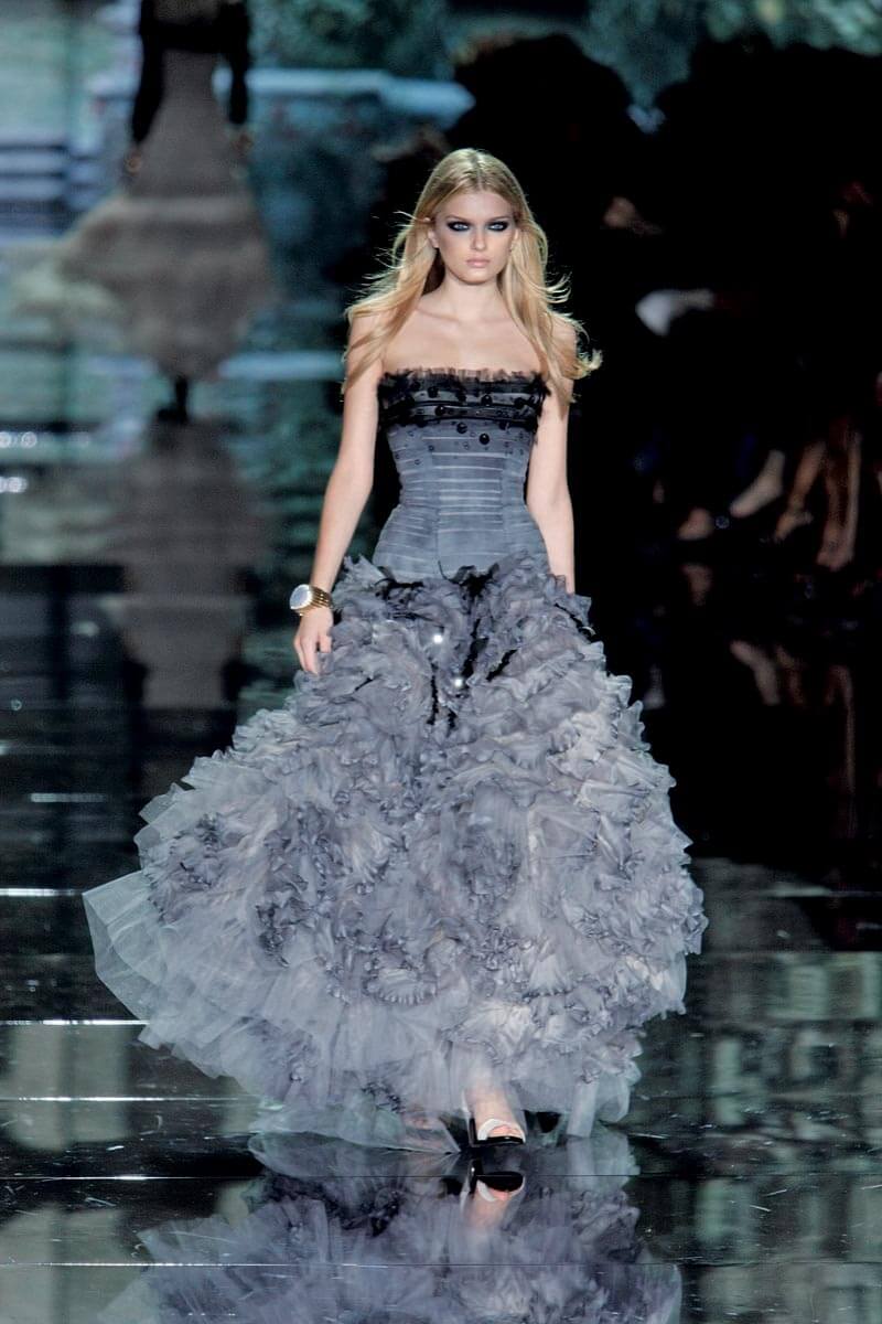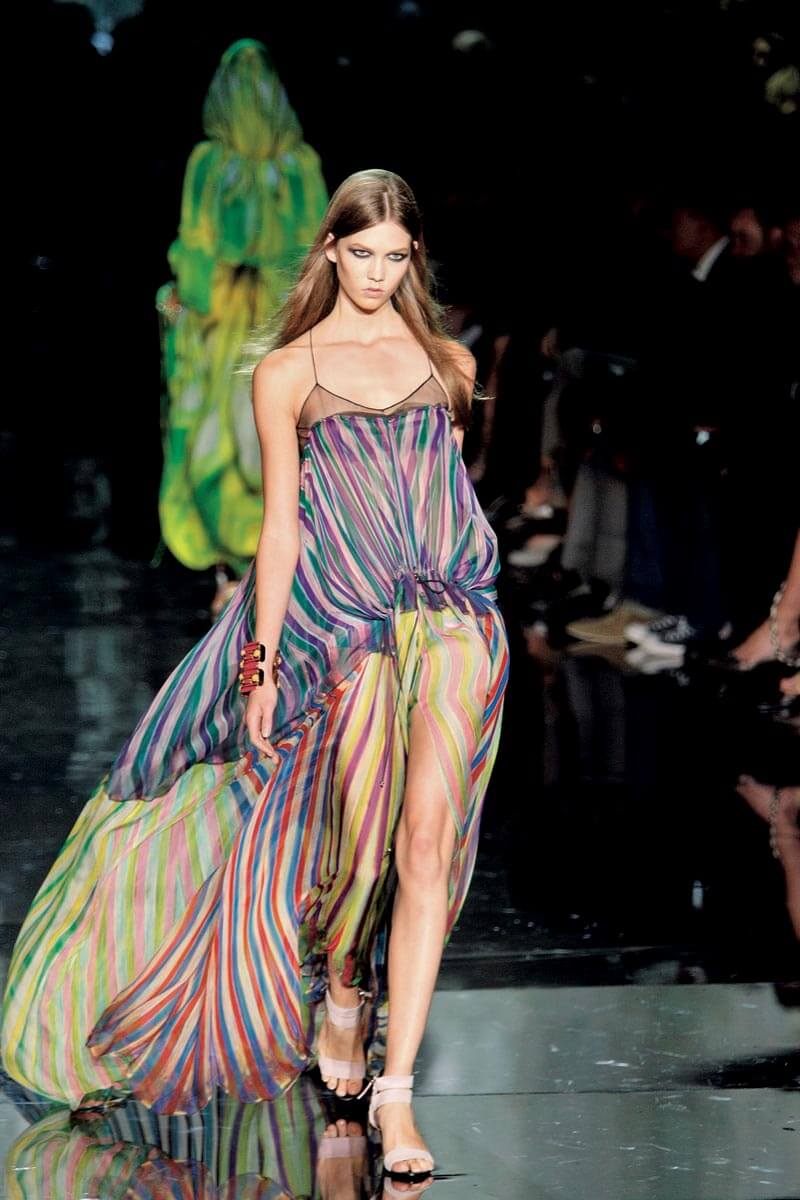 多樣化是今季 Roberto Cavalli 給人的感覺,由開首的超迷你三件式牛仔 裙裝,接下來是帶點夢幻的半透明印花雪紡長裙,一轉眼又有印花「硬咭紙」 corset dress,穿着性感 jersey 黑裙的模特兒更是教人措手不及,而最後的一 系列雪紡晚裝,就為系列劃上句號。這個集大成的系列,卻竟然沒有了 Cavalli 式的冶豔及豹紋圖案 !? 他名字可是 animal print 的同義詞啊 !