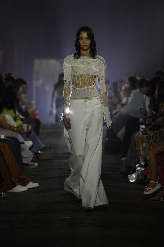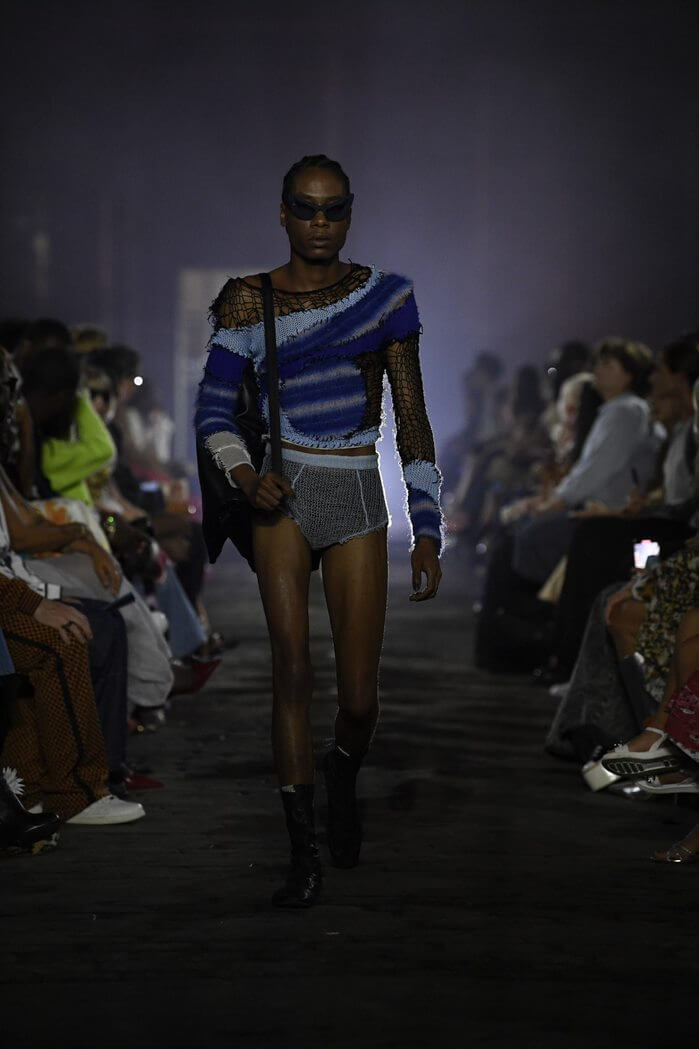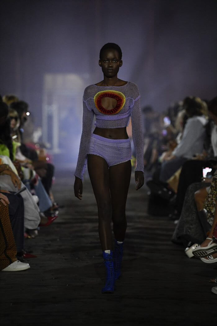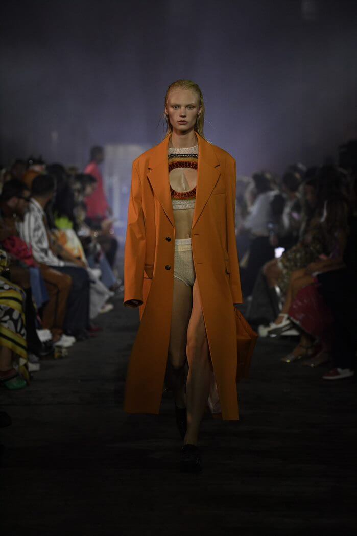另外,今季推出了更多不同質地的拼接:織、串珠、拼布、鏡面也出現在其中,而今季流行的 CROP TOP和背心亦包括其中,也體現了 MARNI 的古怪和俏皮精神。