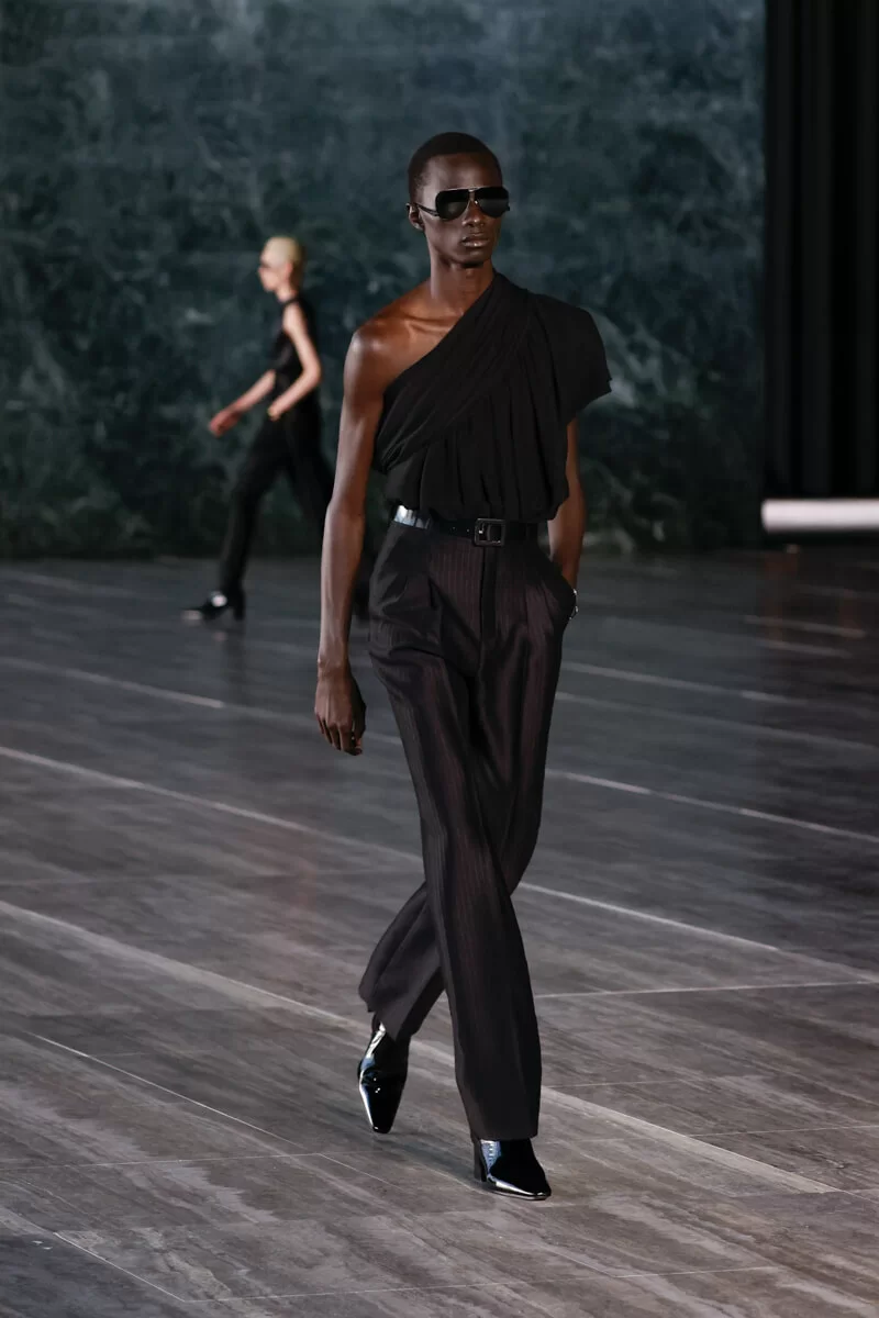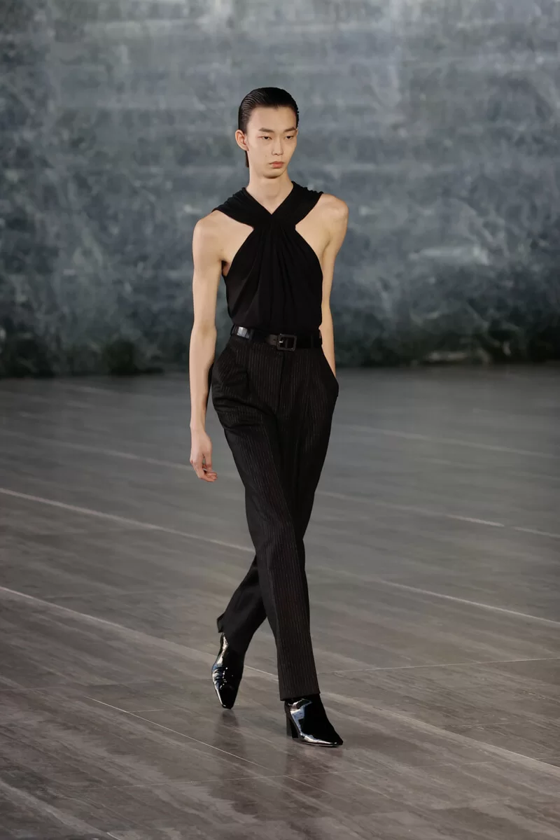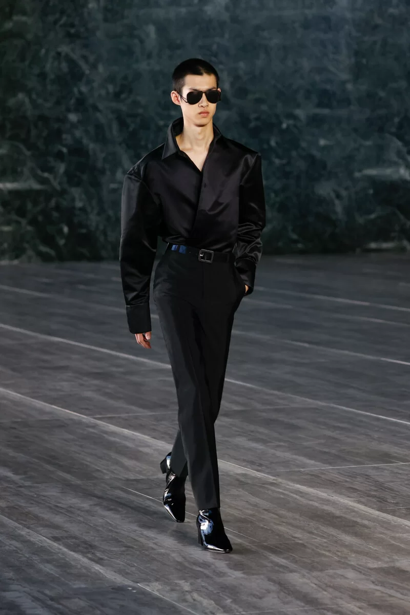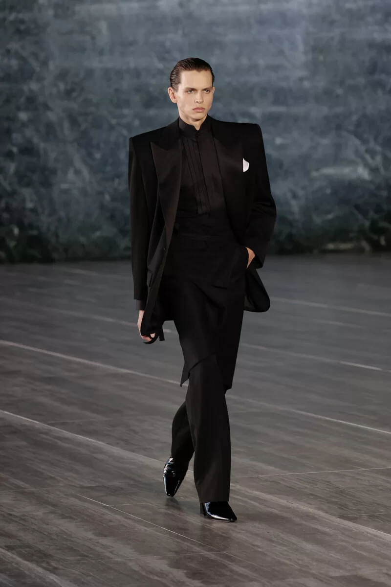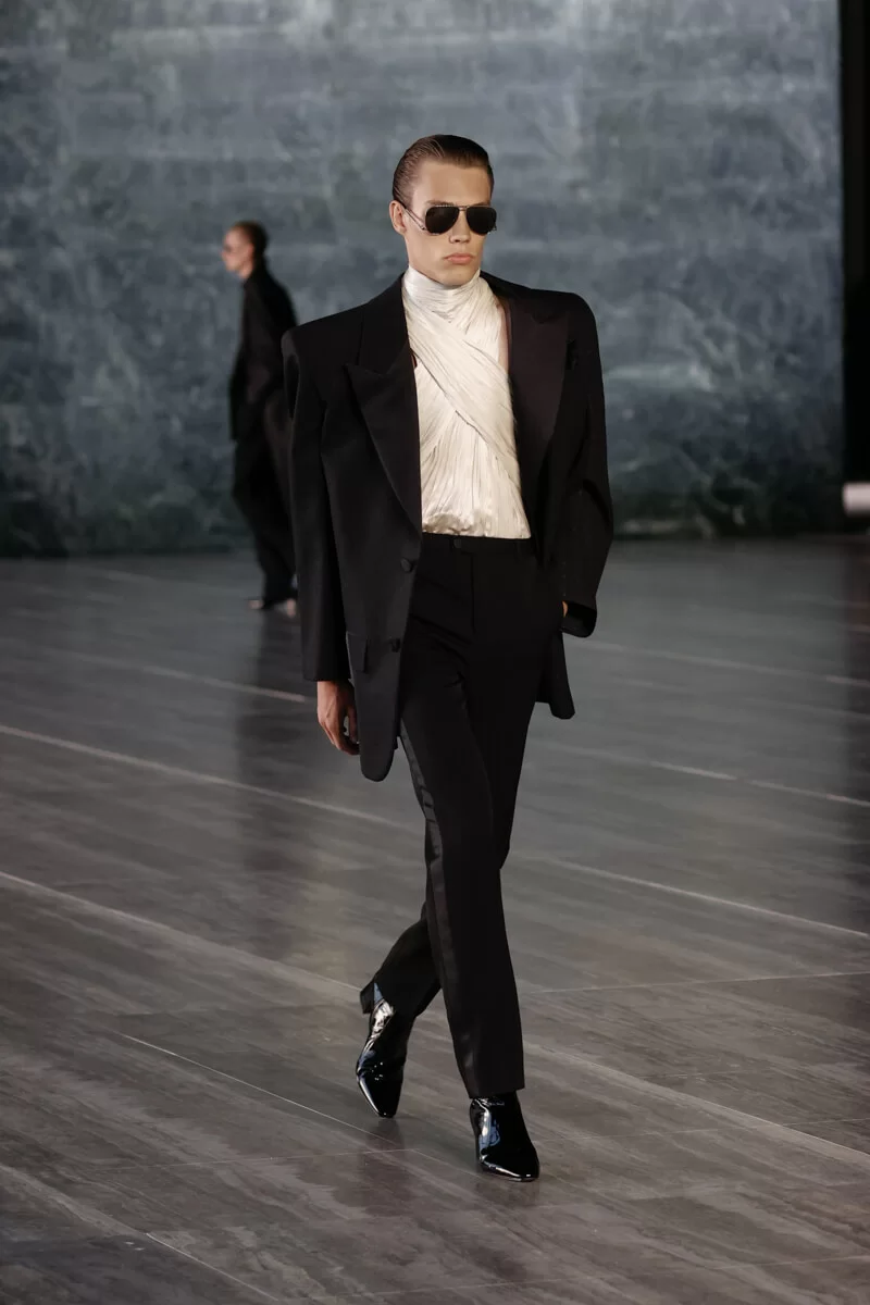 今次系列延續 SAINT LAURENT 近年的大宗旨,透過把女裝系列元素延續至男裝帶來嶄新的觀感,就算兩者的剪裁物料十分相似,卻不會顯得重複,反而顛覆性的令人眼前一亮,足見設計師恰到好處的鬼斧神工。ANTHONY 精準的拿捏了男性和女性的本質,以自由奔放的手法融會傳統的二元性別元素,衣櫥多元折衷的蛻變逾越性別規範。