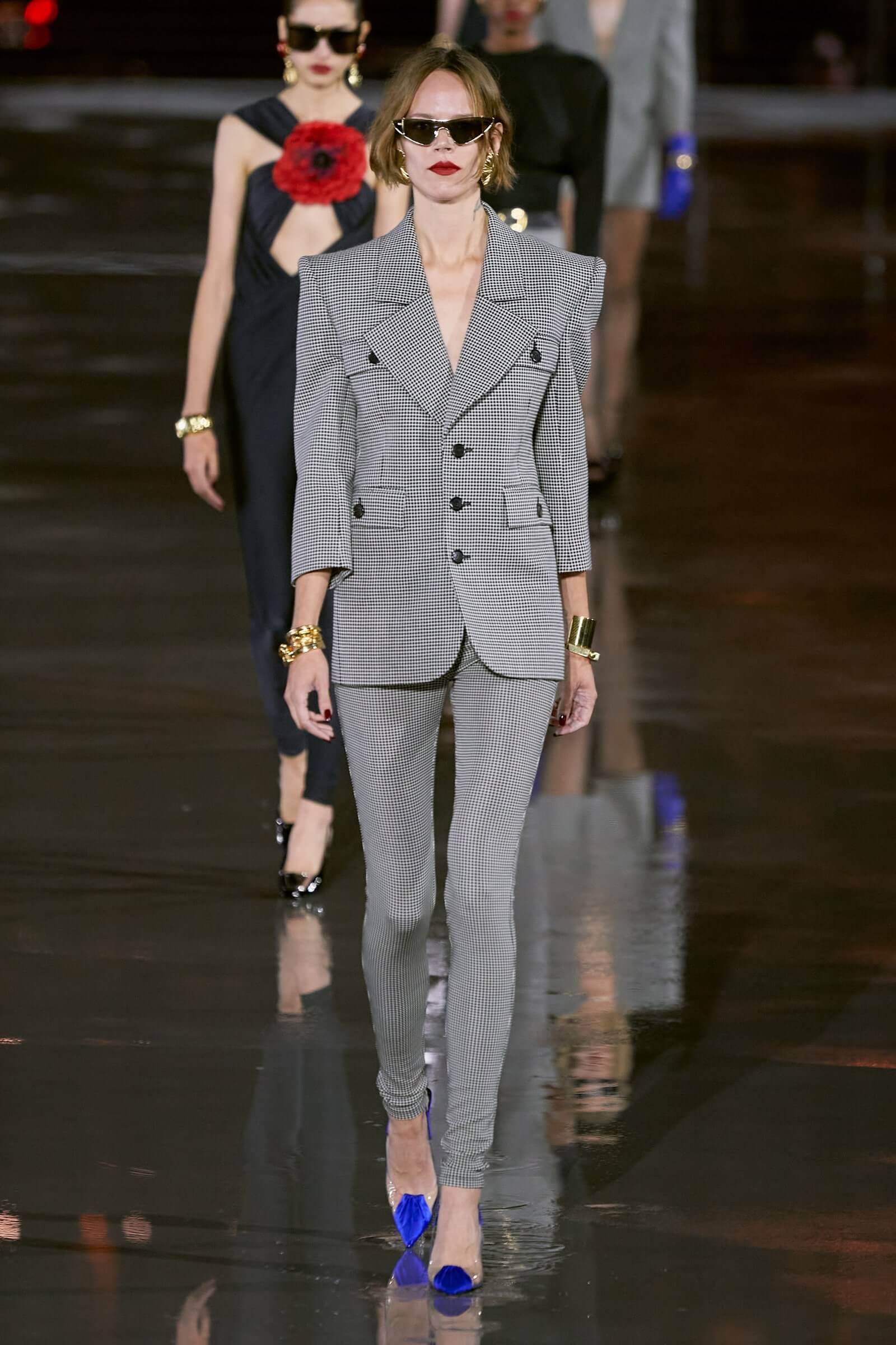 「一直以來,我都想把 PALOMA PICASSO 和 YVES SAINT LAURENT 之間的情誼再現,他們的重要性很少被設計師完整體現。作為一名設計師,我對這個時刻有著極大感觸與共鳴,對我來說,這是奠定 SAINT LAURENT 時尚創意為一種『風格』的關鍵里程碑。」ANTHONY VACCARELLO 表示。今個系列以常用的黑、紅、藍為主色調,剪裁簡單。結構感西裝、緊身彈力上衣,花紋圖案的修身連身褲搭配粗腰束,西裝以肩墊加強硬朗的輪廓。配飾方面,色彩明亮的皮手套、幾何耳環、粗礦的金屬頸鍊、漆皮高跟鞋和巨型圓形眼鏡,為簡單的剪裁加以點綴,與樸素的服裝線條和暴露的肌膚相映成趣。整個系列都呼應著 80 年代的風格,而西裝下的透明半身背心和塞進褲頭的 CLUCTH BAG 則巧妙地增強了輕鬆的時尚感。