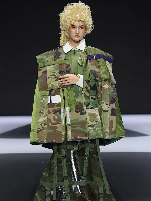 MENU:在CENTRESTAGE展示的《HYBRIDIZED ARMOUR》這場秀,對我來說不只是一場服裝展示,而是一場多重感官的文化語言實驗。我們以「文化混種」為概念起點,重新解構軍服、球衣,以及19世紀維多利亞時期的服裝結構,將這些歷史符號轉化為拼貼式的現代「盔甲」——象徵在這個身份混雜、邊界模糊的時代,每個人如何構築自己的風格與立場。
