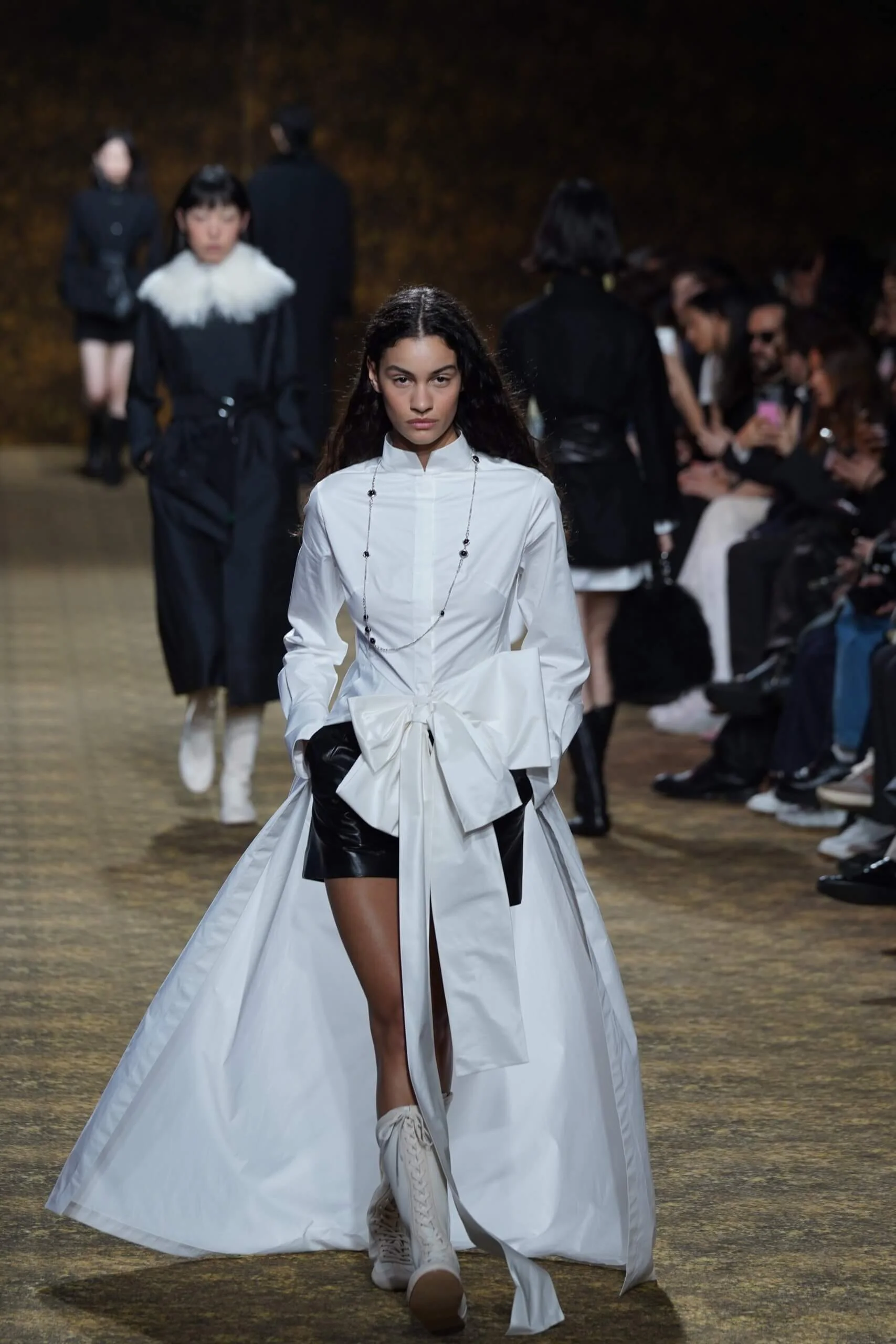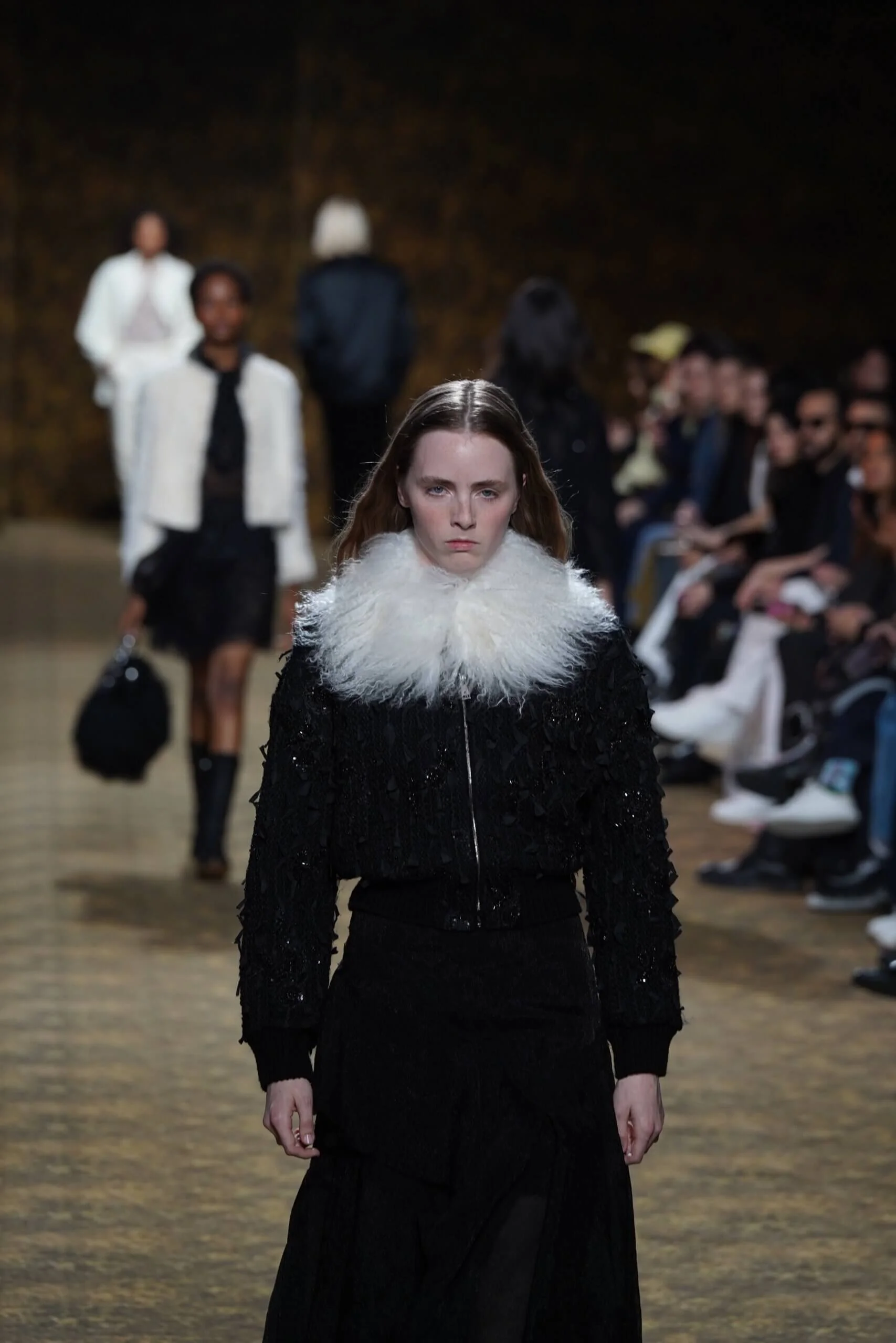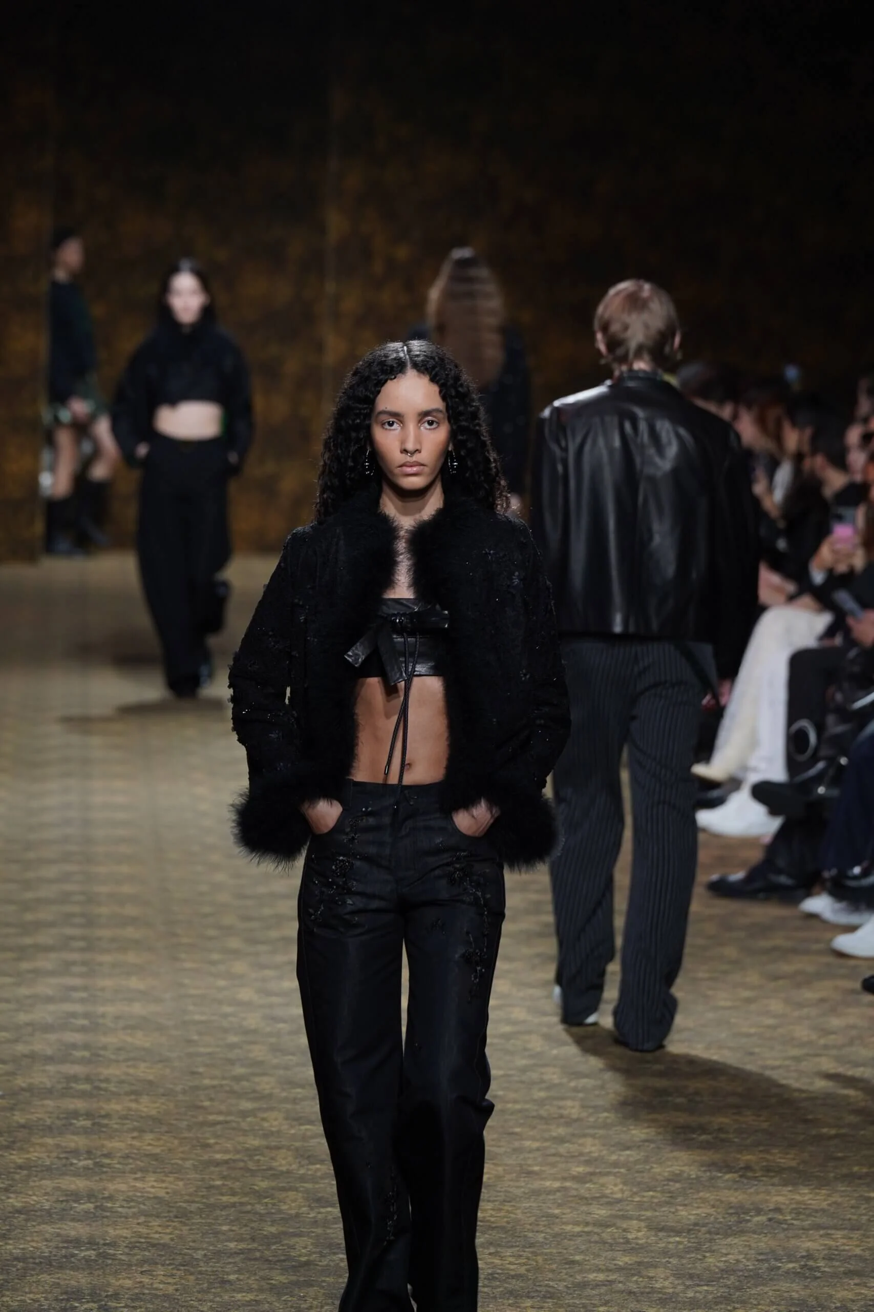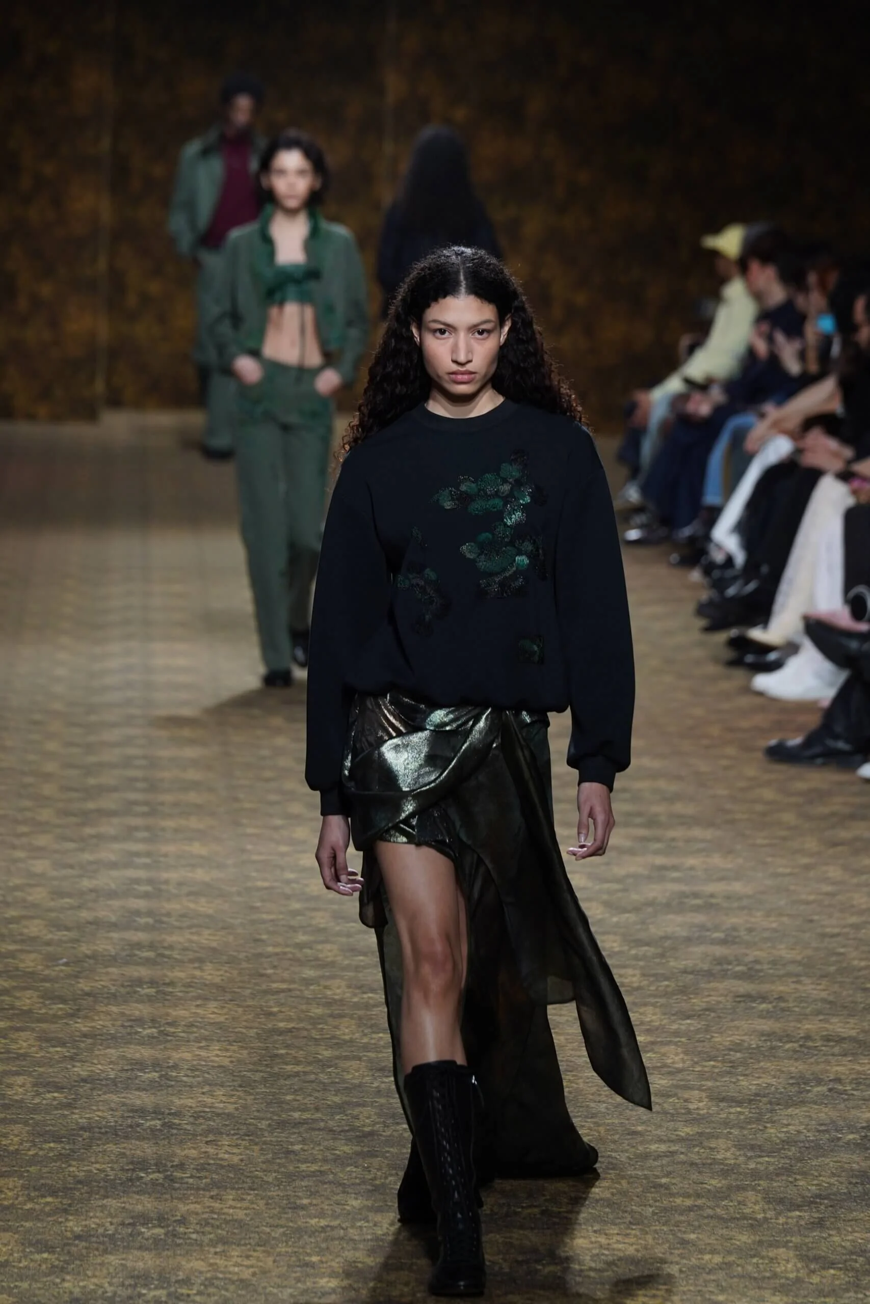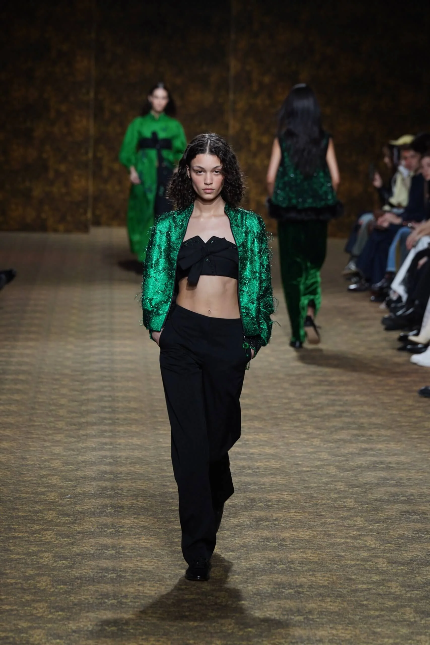 玉不行走,卻在舞中成形。玉作為本季的重點,當然無處不在,小至鑲嵌於刷色牛仔的玉片,隨步伐輕響,大至繫於身的平安扣,化為貼身的精神標記,無不展示出玉自生其光的特性。