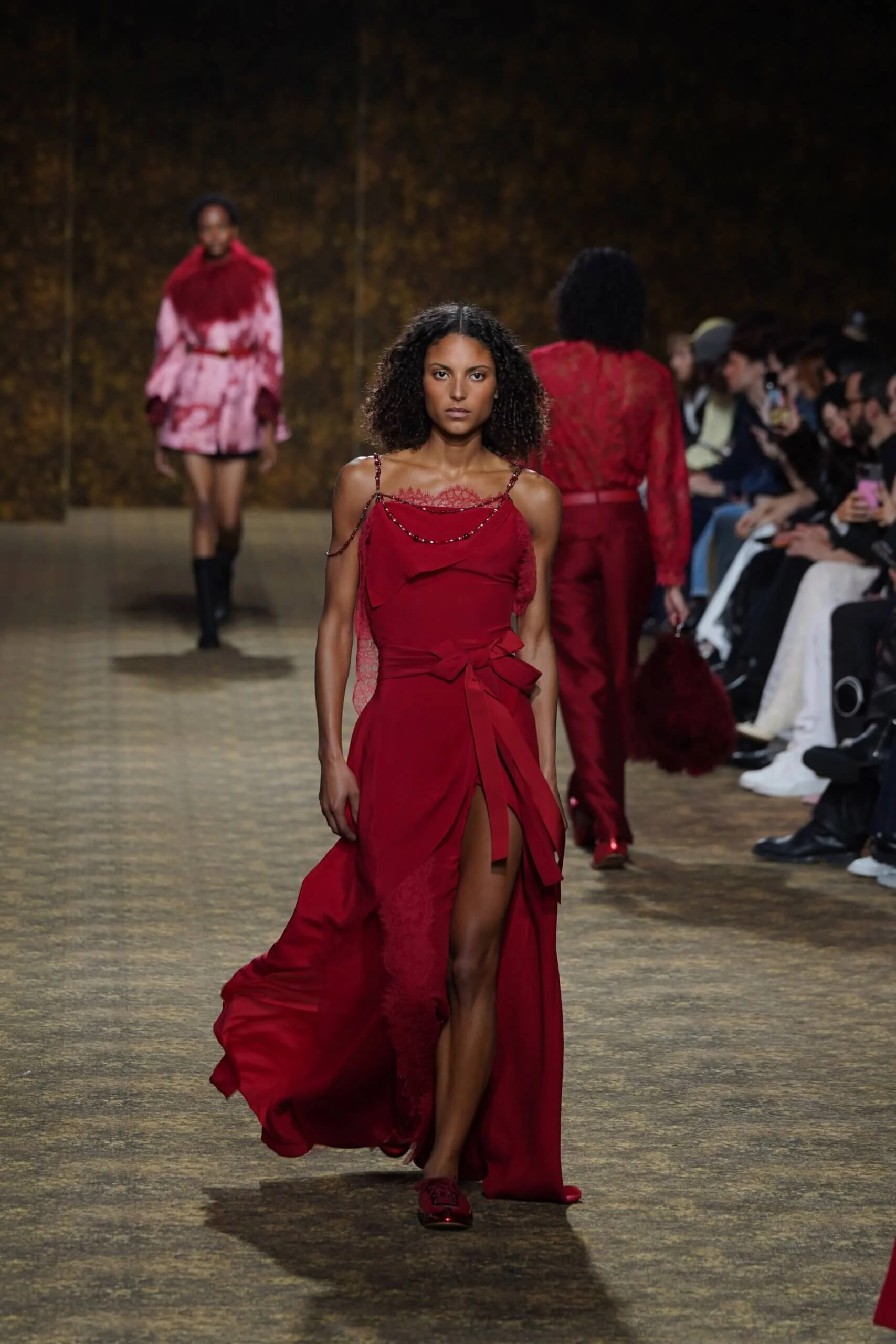 騷場宛如一幅穿越大唐的流動畫卷,模特兒步伐徐徐,衣裳飄逸,線條與色彩呼應盛世氣象,書寫著當代的盛唐風華。