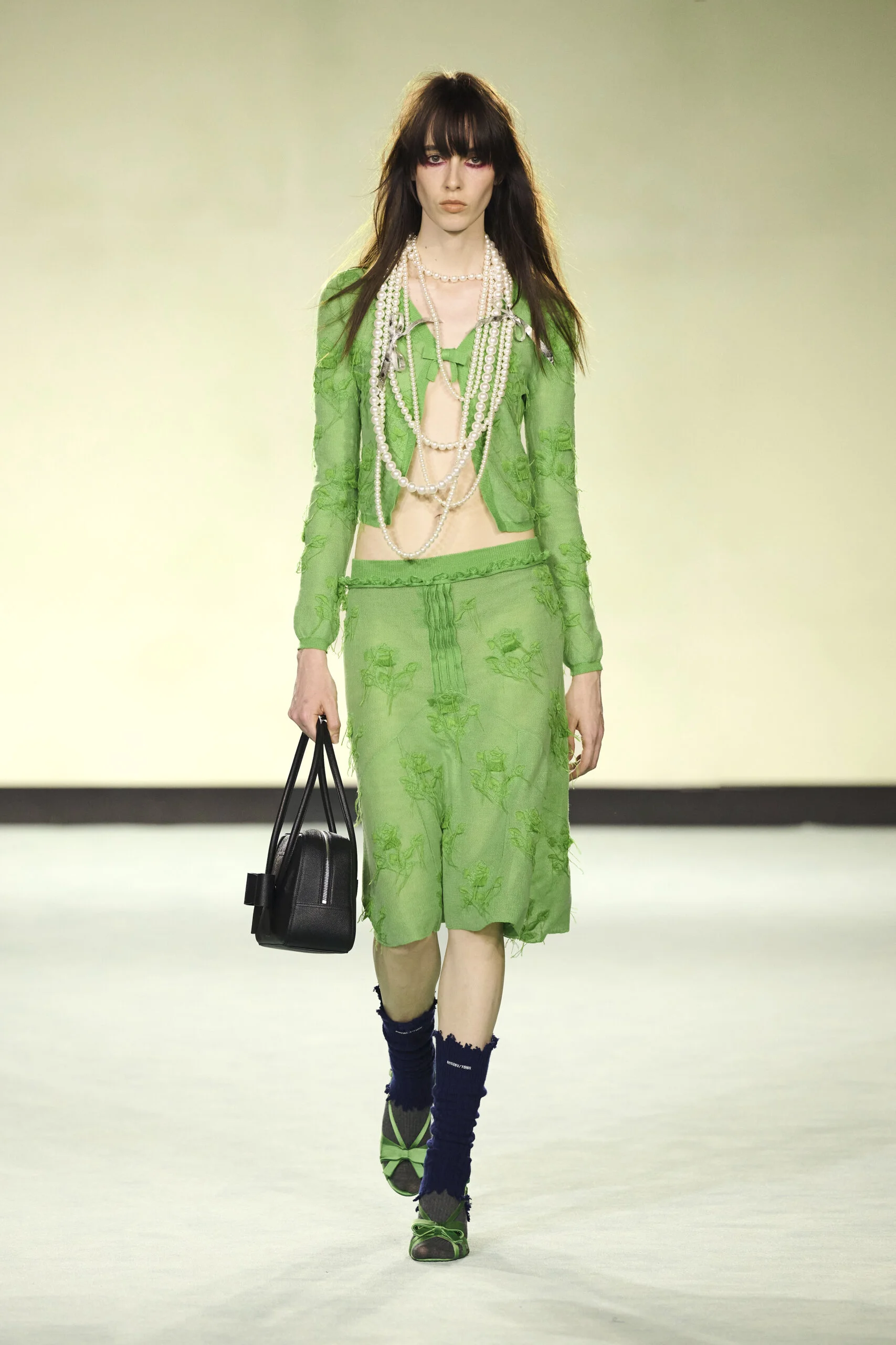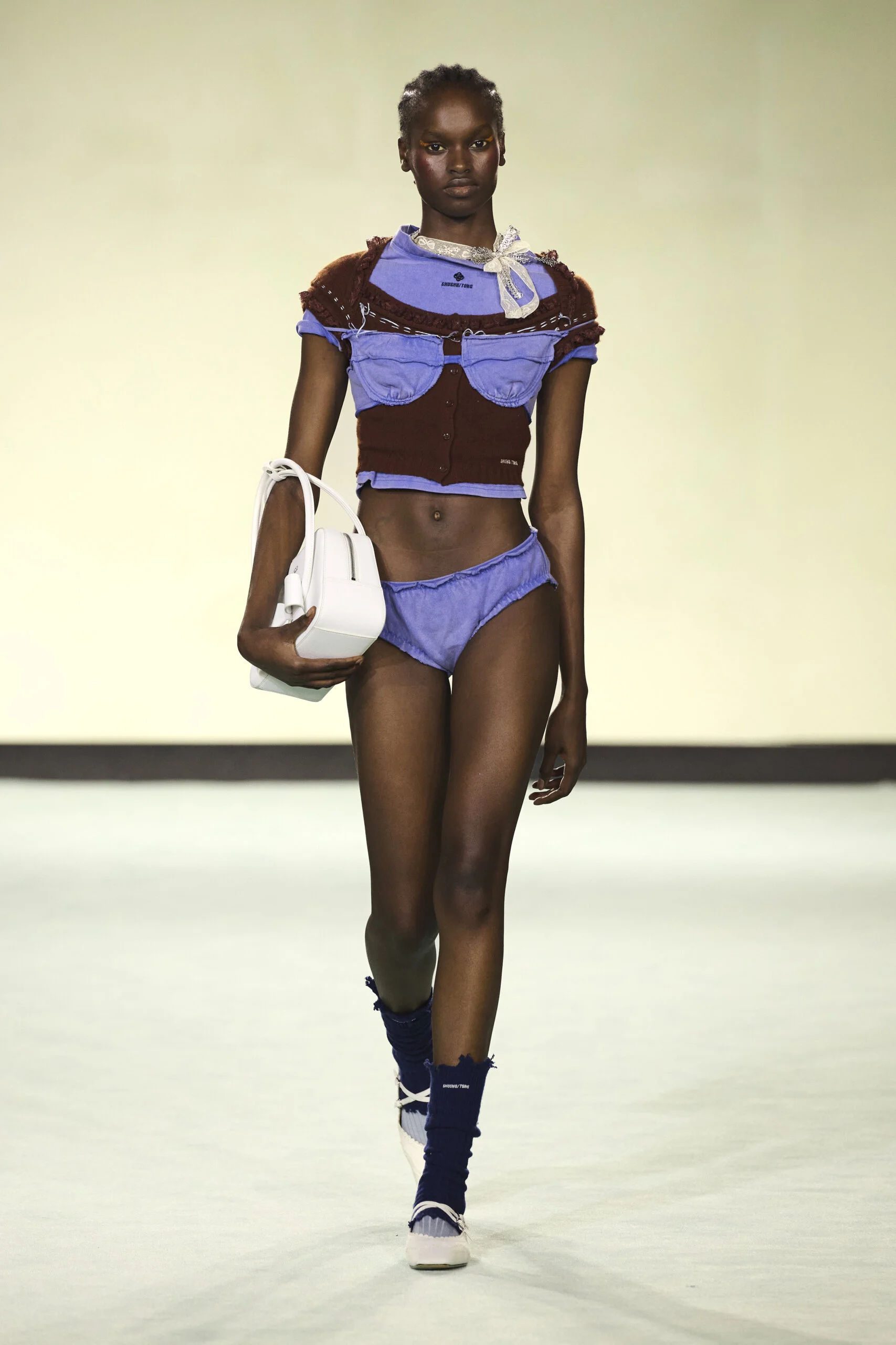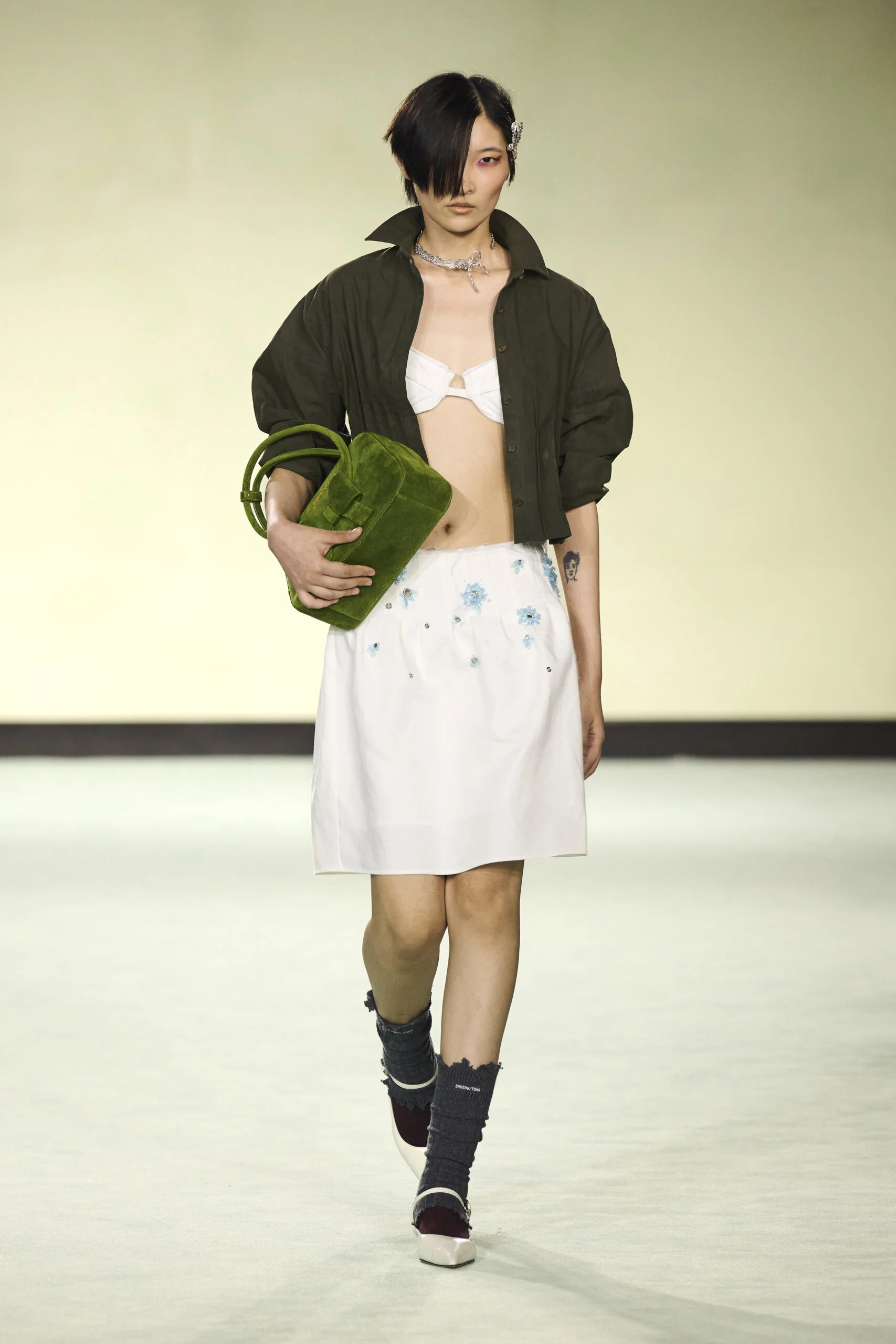 SS26 我們想塑造一種帶有破碎感的形象。靈感來自一部電影《五至七時的琪奧》(CLÉO DE 5 À 7)。電影講的是一位小有名氣的女歌手,在等待可能是癌症的檢查報告,而影片的時間與現實世界是同步的。那兩小時裡,她在城市中遊走、見朋友和胡思亂想,內心非常忐忑。那種表面平靜、內在翻湧的狀態,讓我覺得很有意思。