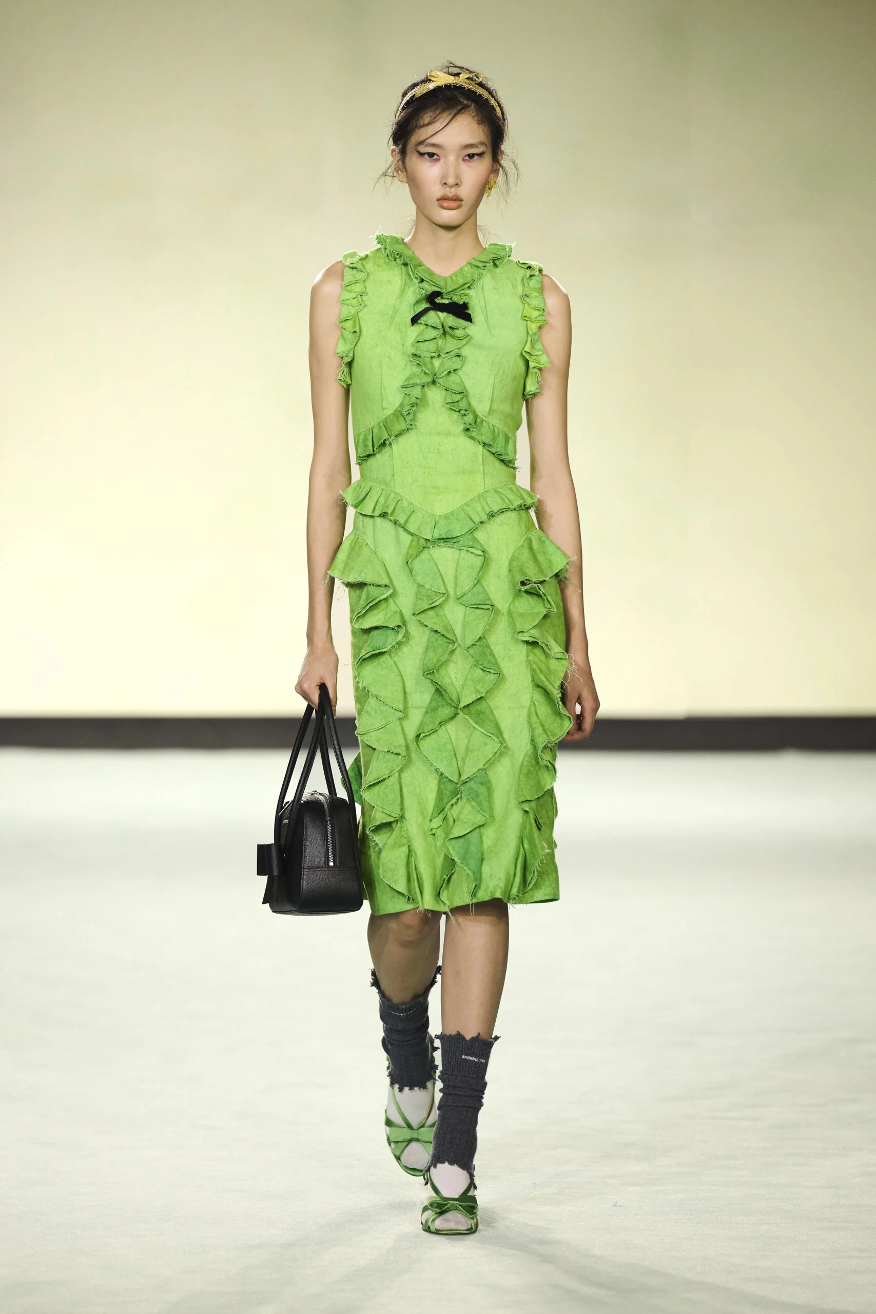 以前我也覺得貼身的衣服好像不夠有衝擊力,不知道該怎麼做,但現在慢慢找到方法,讓衣服在保有時裝感的同時也更實穿。相比把裙子做得很誇張,現在更想處理的是如何讓設計真正進入生活,而這件事,其實比做大廓形要難得多。