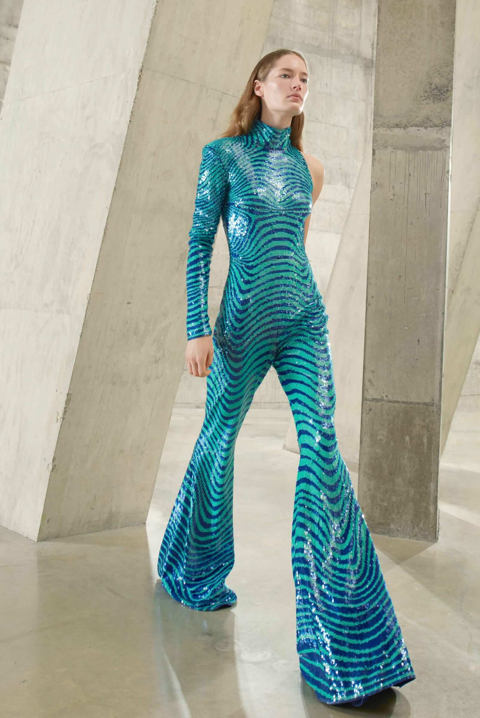 另外值得一提的是,STELLA MCCARTNEY 今季不斷 HIGHLIGHT 下半身的設計,例如像片片楓葉組成的喇叭長褲、顏色奪目且廓型膨腿的 BALOON 褲款以及閃亮的貼身長靴。設計大膽搶眼,同時亦非常方便配搭。STELLA MCCARTNEY 表示希望這種設計能減少暴露感,同時讓人更加輕便自如,希望此系列可以讓男女都能共穿。