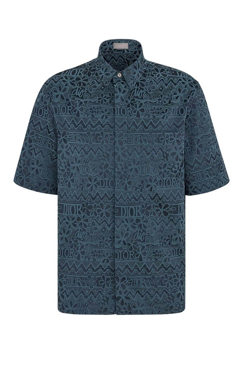 這件藍色的聯乘 SHIRT 衫由意大利製造,以隱藏式鈕扣款為主,飾以珍珠頸扣鈕作點綴,DIOR X STUSSY 的塗鴉PRINT 低調而清晰的印於作品之上,略有民族色彩,盡顯品牌前衛且奢華的風格。