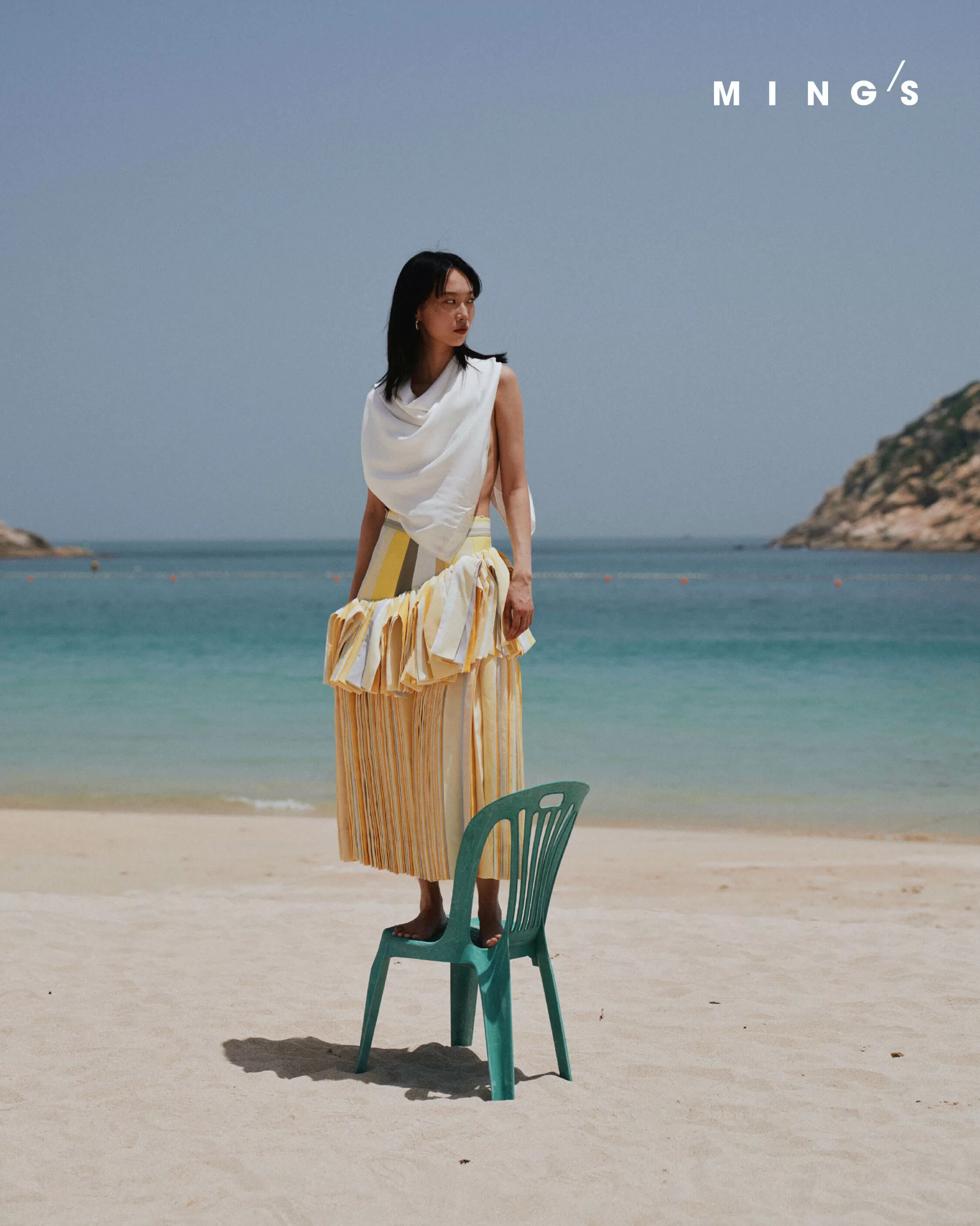 SCARF AS TOP, SKIRT & EARRINGS ALL FROM BOTTEGA VENETA