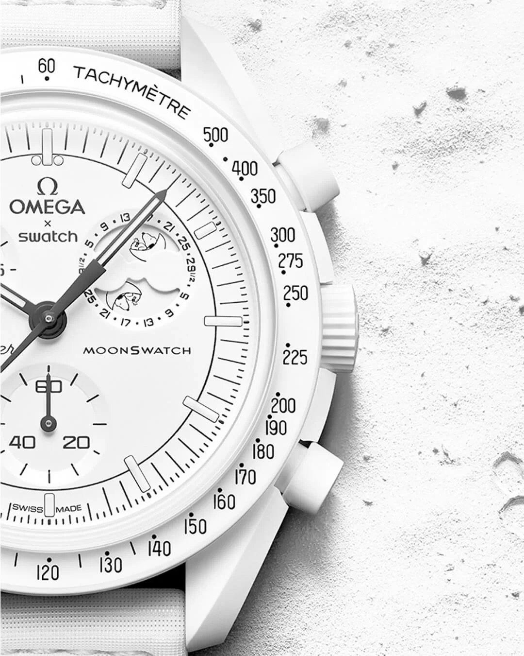 在介紹新錶前,先跟大家重溫一下 MOONSWATCH 的背景:MOONSWATCH 是 2022 年由 SWATCH 與 OMEGA 攜手推出的聯乘系列,從 OMEGA 的 MOONWATCH 進化而成的 MOONSWATCH,以專利研發的生物陶瓷創作出一系列 CP 值極高的腕錶。自聯乘系列誕生以來,每每推出也被人搶空,包括有 MISSION ON EARTH、(全球瘋搶的)SNOOPY 三方聯乘等,在一手和二手市場一直有市有價。