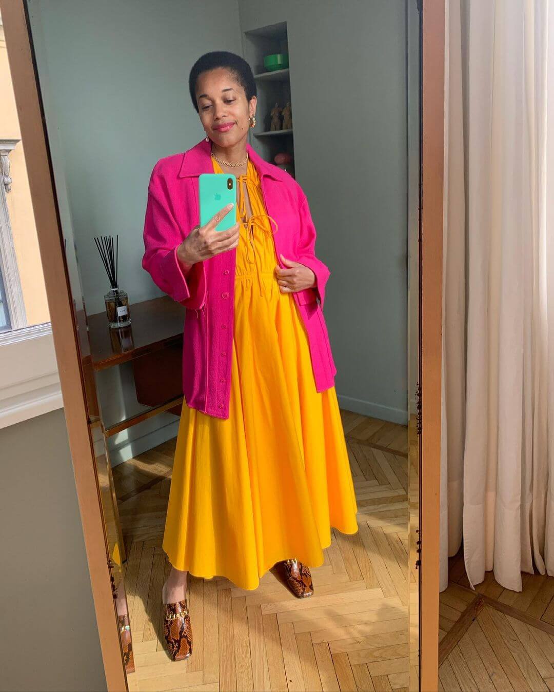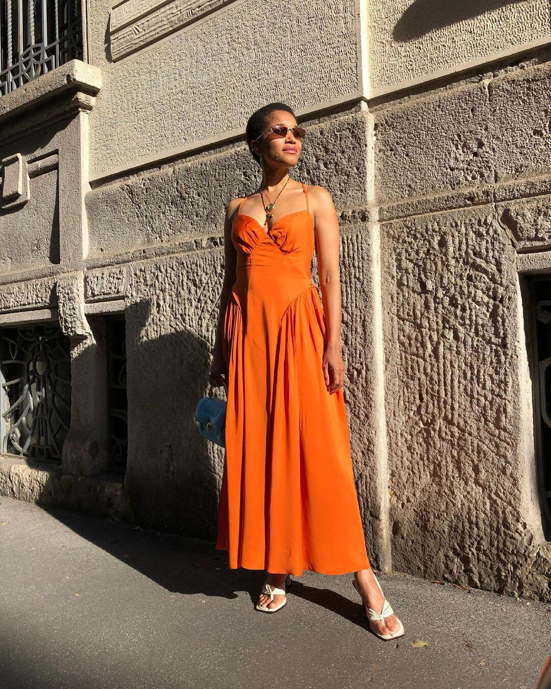 出生在牙買加,身兼攝影師和時裝雜誌主編的 TAMU MCPHERSON 現居於時尚之都米蘭,同樣熱愛橙色。她的街拍造型以不拘一格的絢爛色彩和細節著稱。也許黑人天生穿起亮色衣服總是比起亞洲人更勝一籌,TAMU MCPHERSON 的彩色造型往往讓人印象深刻,看過之後仍意猶未盡,有著天生能駕馭彩色的能力。橙色放在她身上,更讓原本黝黑的膚色也多了幾分亮麗和光澤感,神彩飛揚。