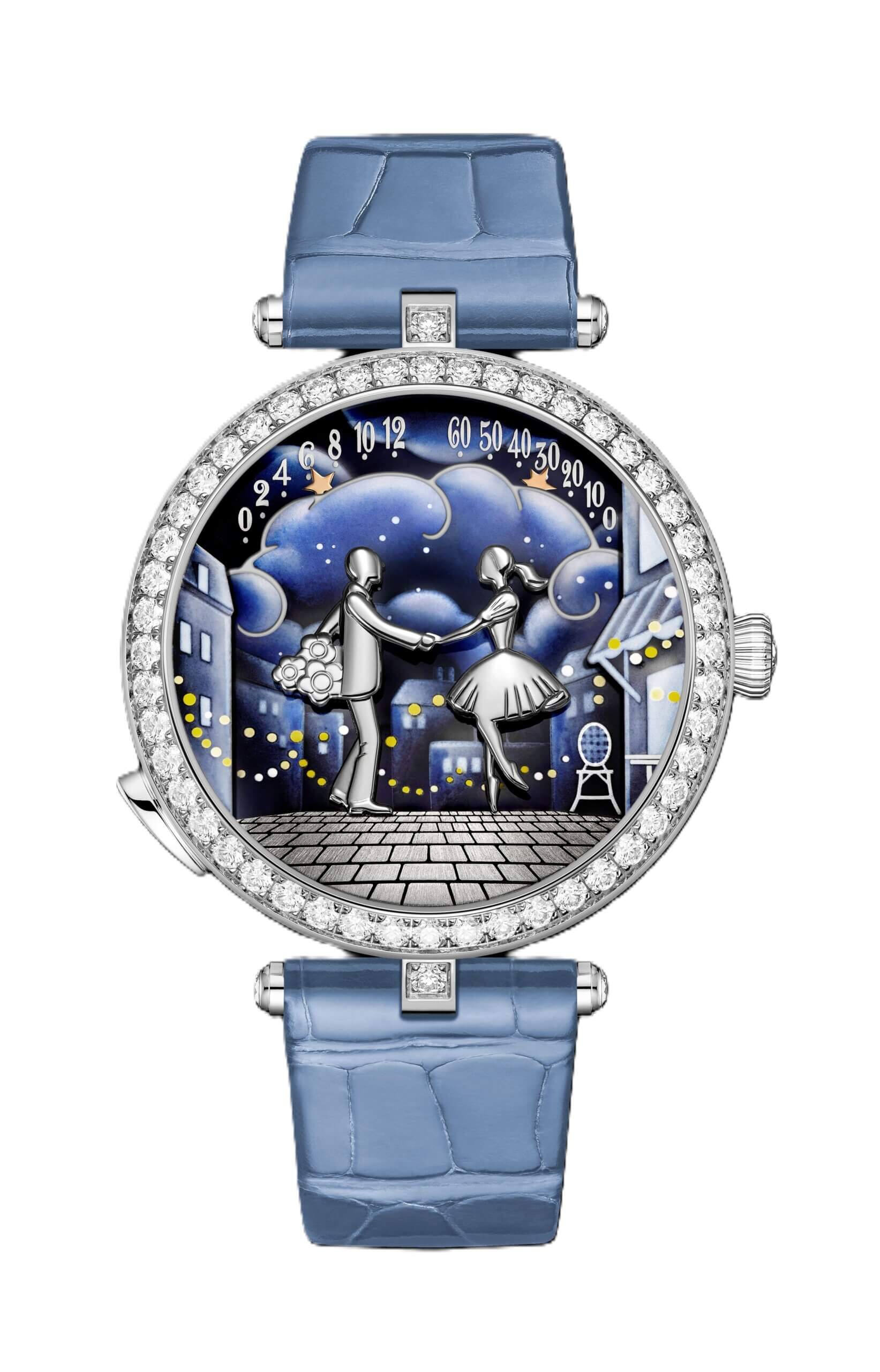 到了 2025 年,世家再度延續「PONT DES AMOUREUX」的浪漫愛情故事,推出了全新的「LADY ARPELS BAL DES AMOUREUX AUTOMATE」腕錶。當初那個遊歷巴黎的小女孩現已亭亭玉立,她愛上了邀她密會藝術橋的年輕男子,於是世家將約會場景從橋上移至19世紀巴黎郊外的露天咖啡館(GUINGUETTE),展開一場新約會,再度演繹一對戀人的故事。