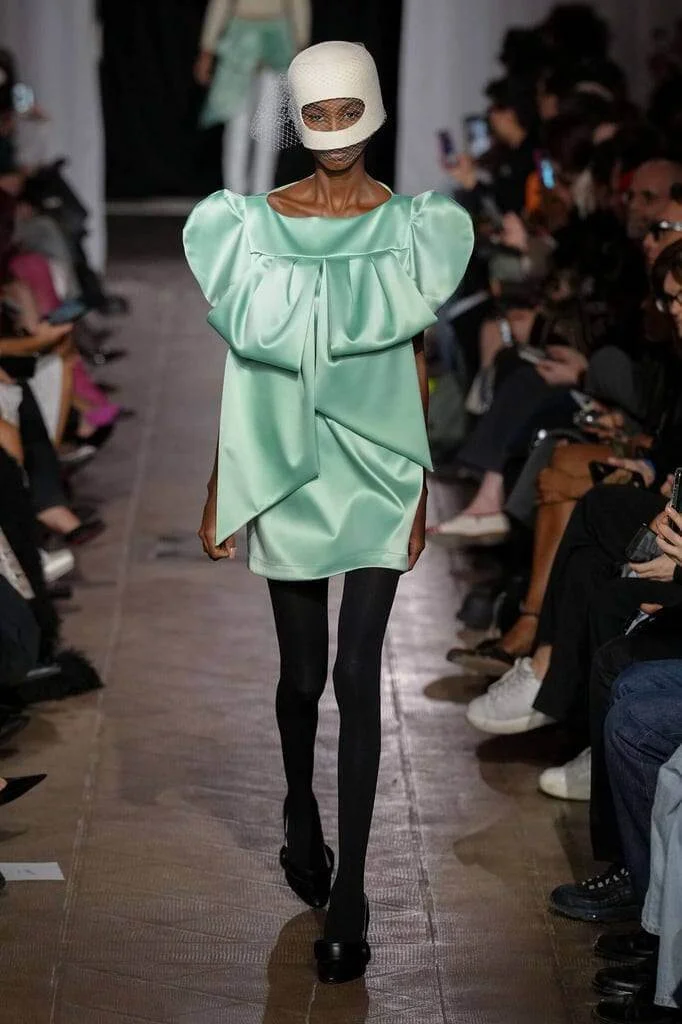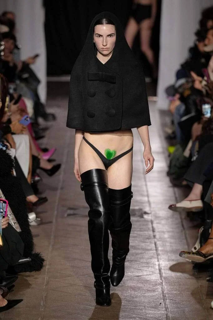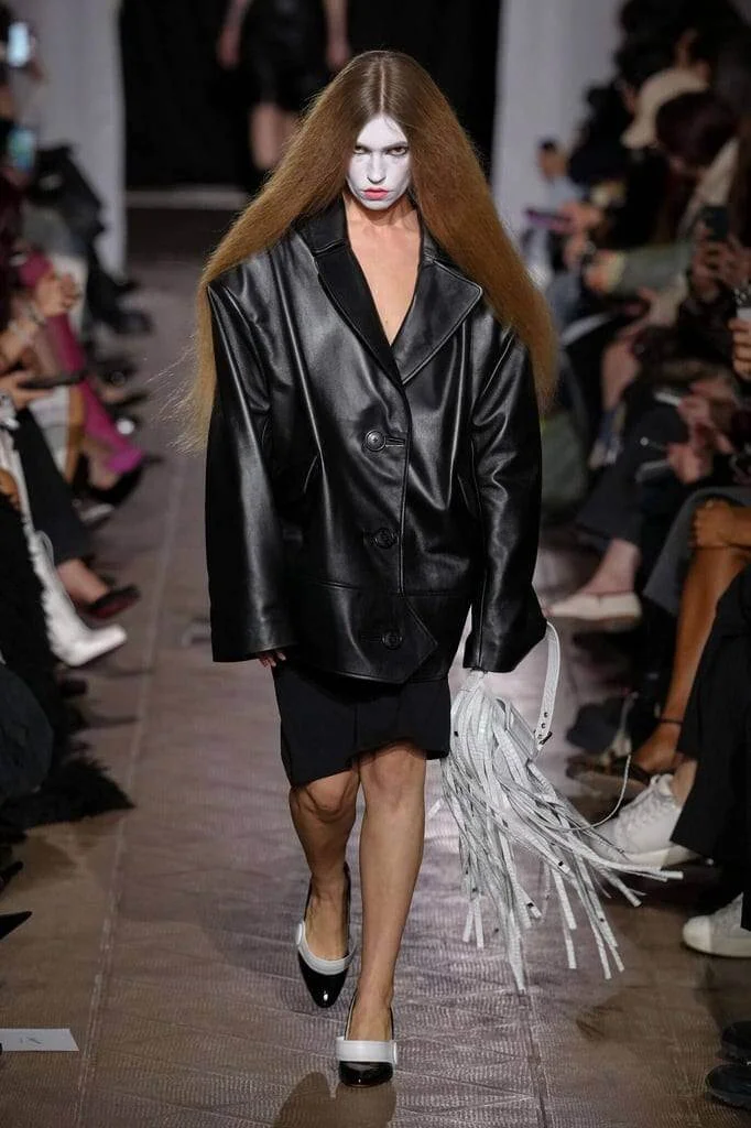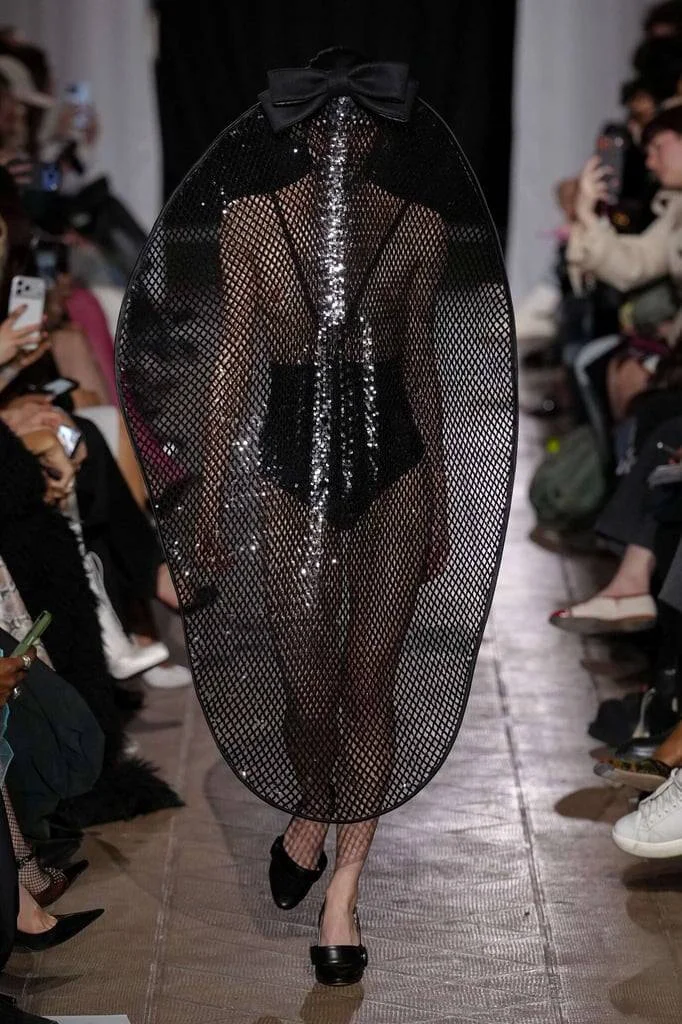 VAQUERA 把 2026 秋冬系列描述為對未來固定模樣的拒絕,並將珍珠、動物紋皮草和塔夫綢禮服等法式經典元素進行誇張與變形處理,呈現出一系列極具衝突感的造型。