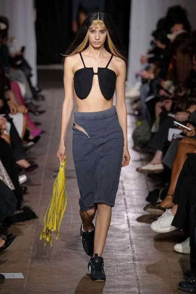在本季度,VAQUERA 也從美國先鋒設計師 RUDI GERNREICH 的未來主義作品取材,因此在此系列中重現了 RUDI GERNREICH 在 1964 年推出的標誌性泳裝——「MONOKINI」(迷你比基尼)設計,泳裝由兩條極細的掛脖肩帶和一條高腰泳褲組成,穿著者的胸部會完全裸露。