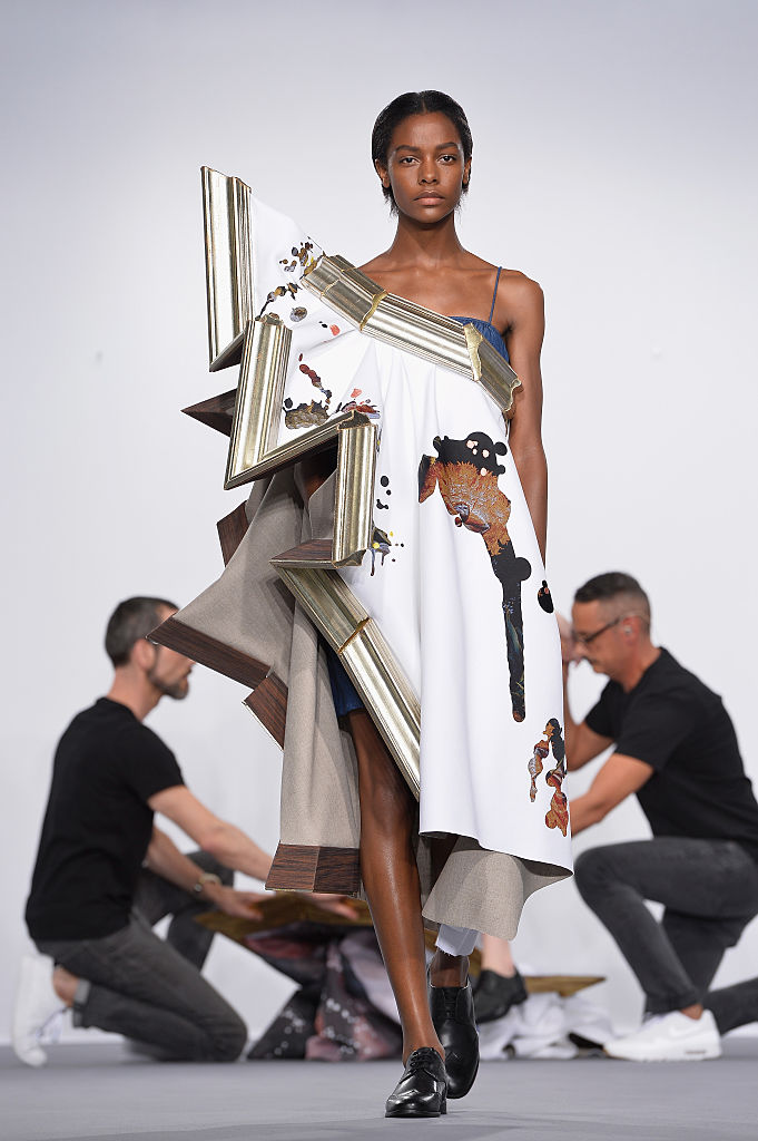 這場秀是Viktor & Rolf另一巔峰之作。他們將畫框融入大衣、連衣裙;布料上的圖案就參考了17世紀荷蘭黃金時代的畫作。這個系列根本是名副其實的wearable arts,而模特就是個行走的畫框。一如過往,Viktor 和 Rolf 就是不能乖乖地坐著看秀。走秀途中,二人把模特身上的畫框服裝脫下來掛在牆上,成為另一件藝術品,手法令人驚艷。
