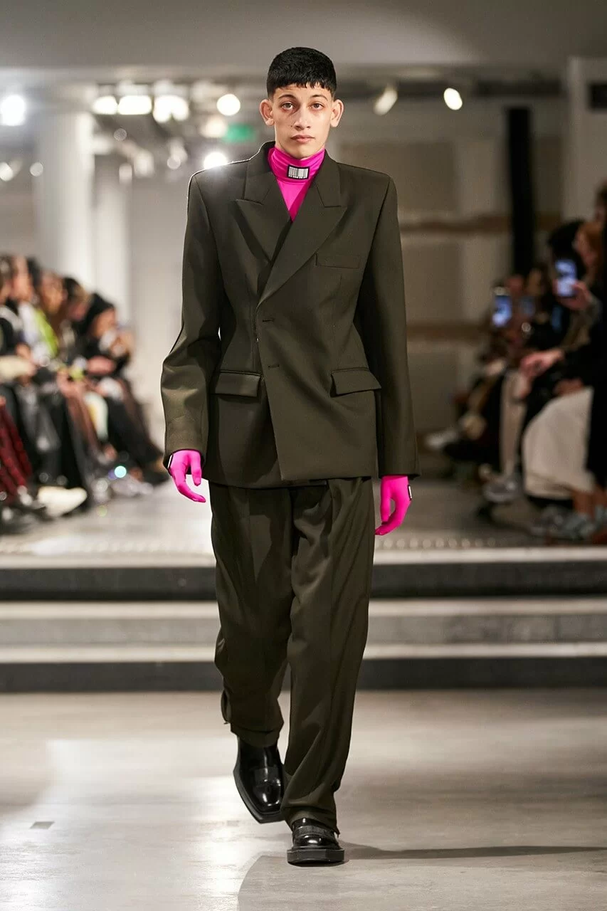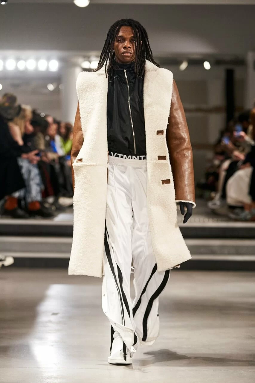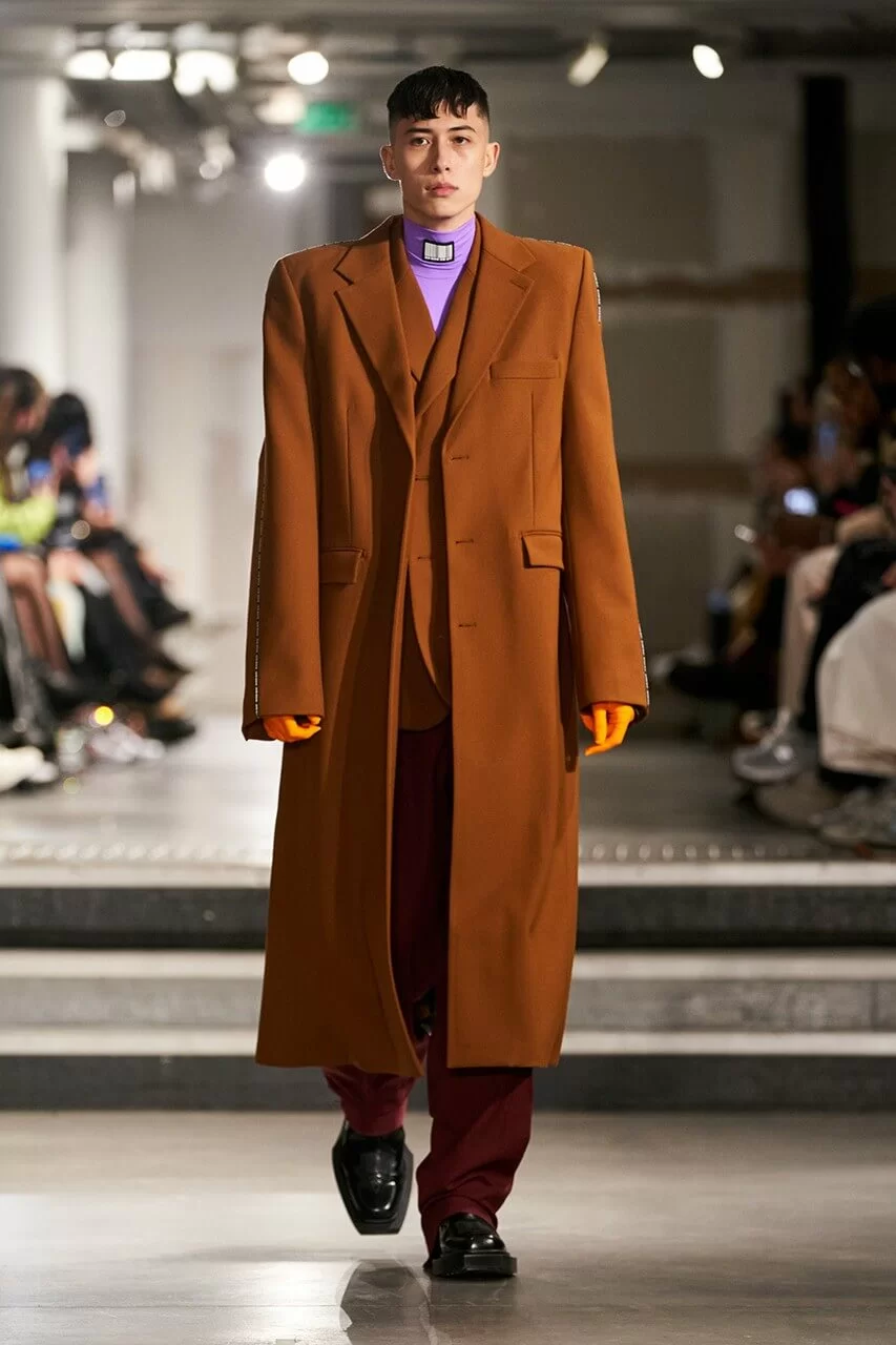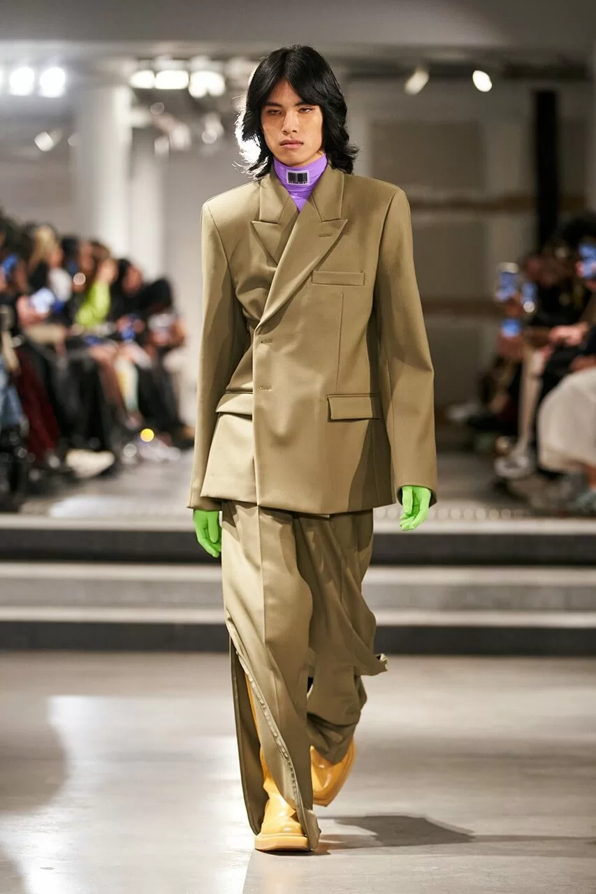 不少人在看完 VTMNTS 的大騷都留意表示:為什麼他們(模特兒)看起來都這麼憤怒?這群「暴走」的青年,穿上寬厚肩膀的西裝或羽絨在展場上行走。VTMNTS 以解構和扭曲圖案為基礎,重新定義了服裝,品牌採用最先進的技術與傳統的裁縫技巧互相結合,更開發了屬於自己的可持續性物料,並以這些新物料設計出適合所有體型的獨特款式。