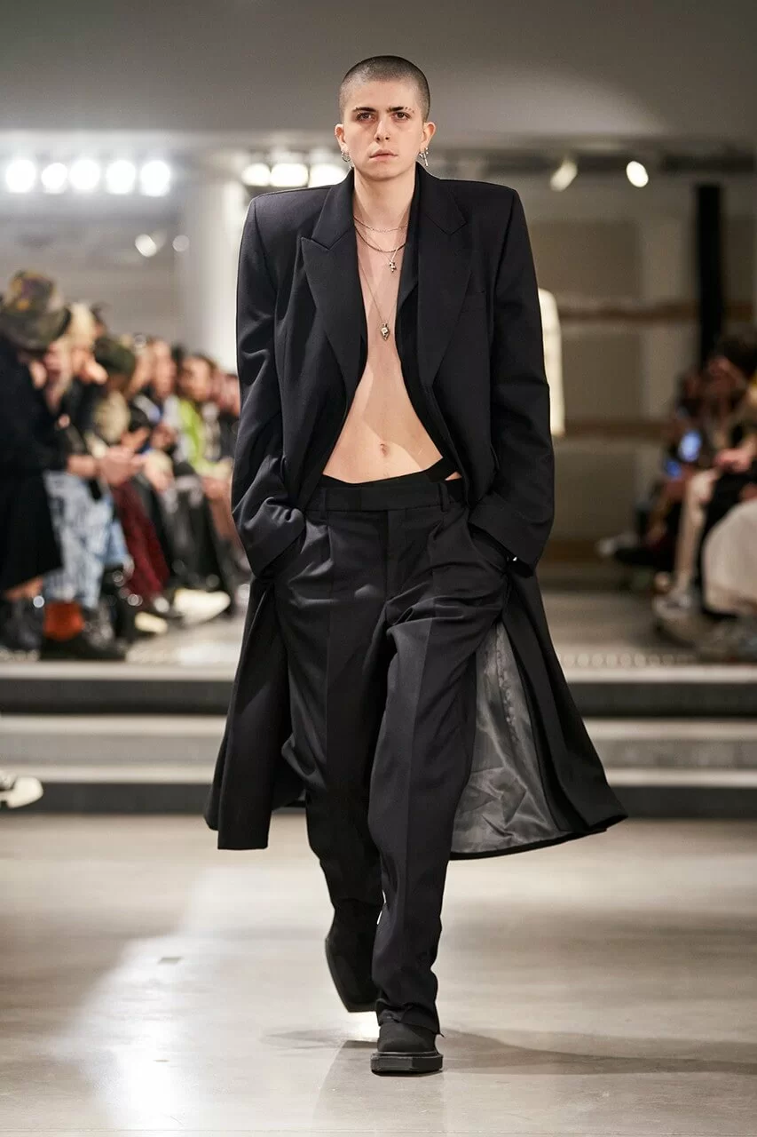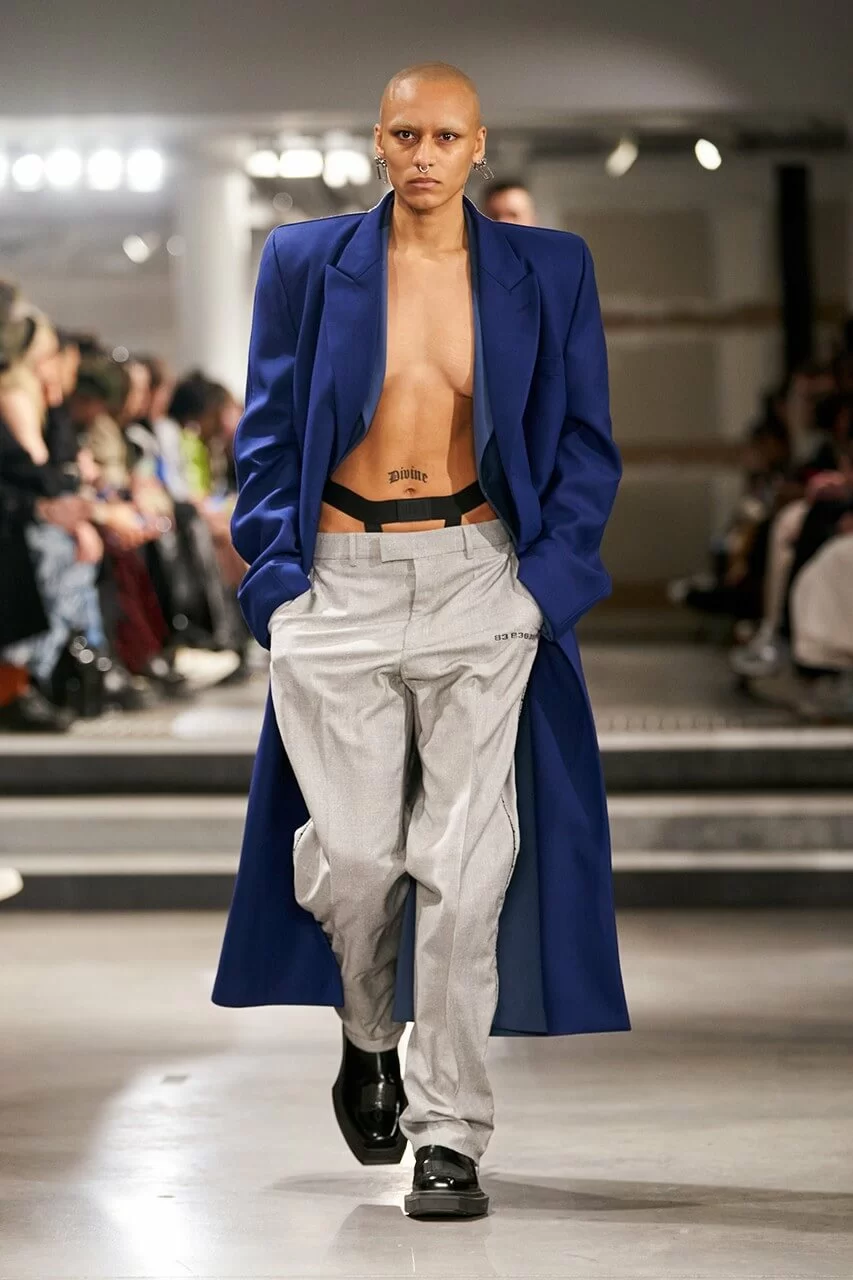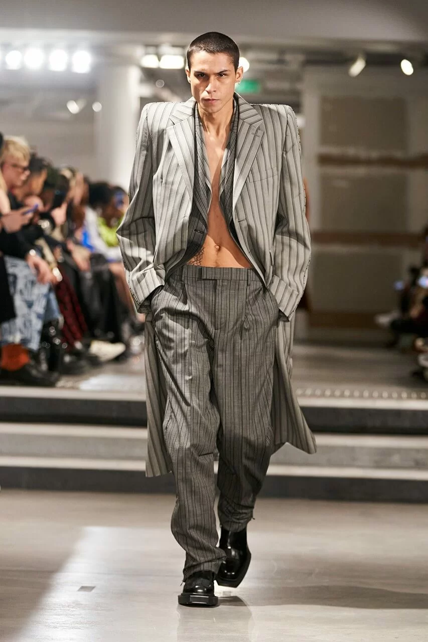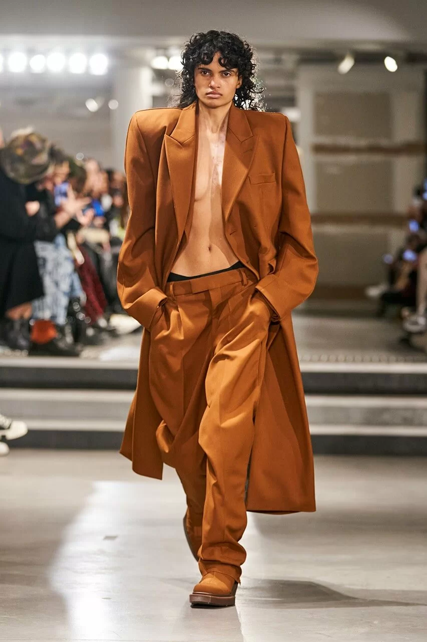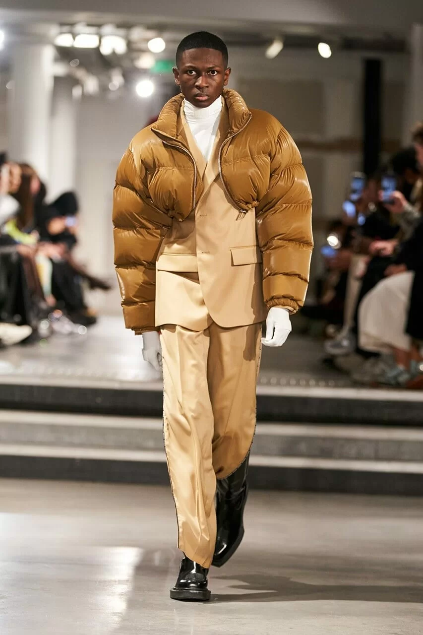 不少人在看完 VTMNTS 的大騷都留意表示:為什麼他們(模特兒)看起來都這麼憤怒?這群「暴走」的青年,穿上寬厚肩膀的西裝或羽絨在展場上行走。VTMNTS 以解構和扭曲圖案為基礎,重新定義了服裝,品牌採用最先進的技術與傳統的裁縫技巧互相結合,更開發了屬於自己的可持續性物料,並以這些新物料設計出適合所有體型的獨特款式。