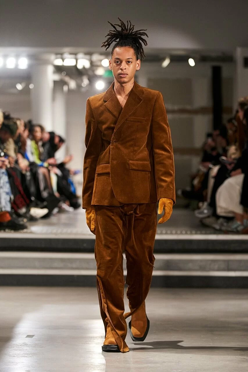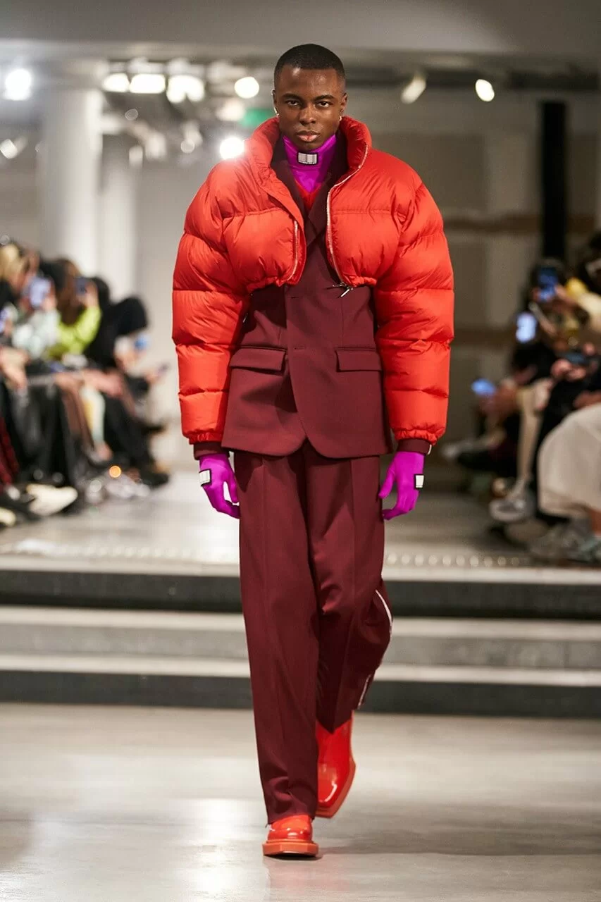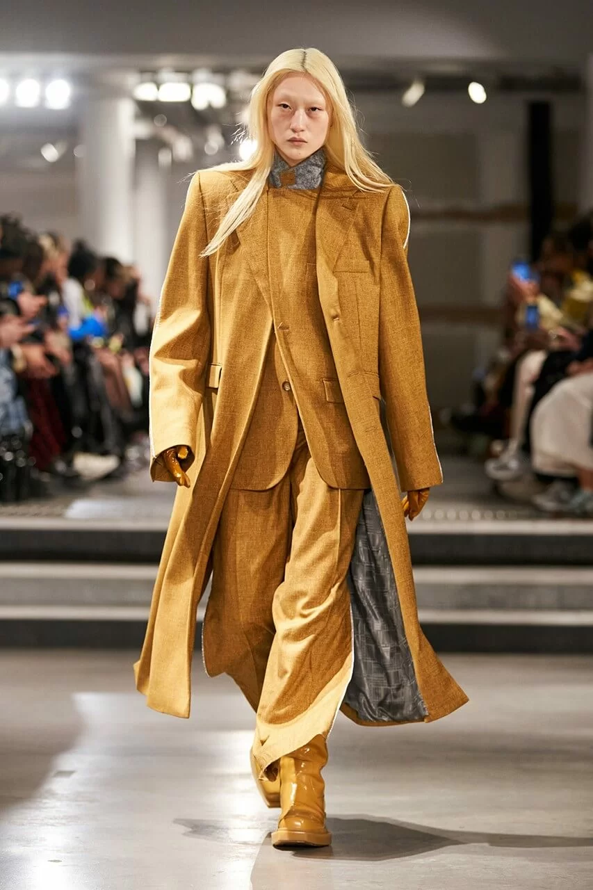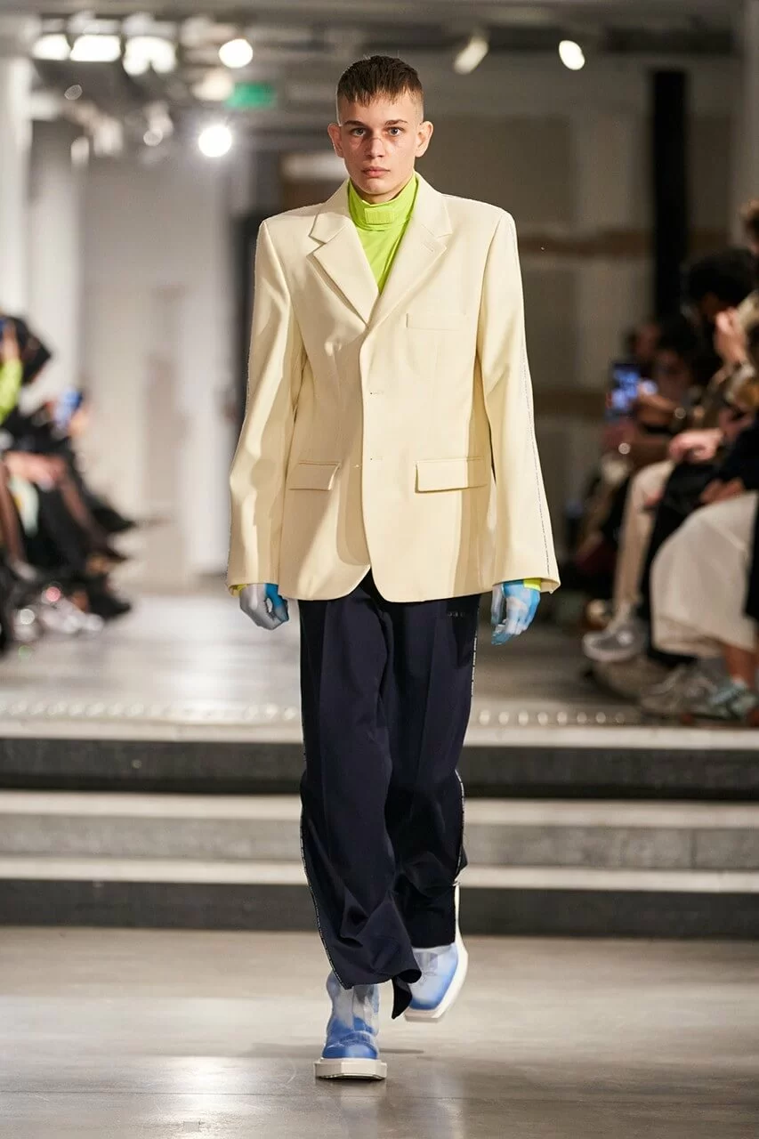 不少人在看完 VTMNTS 的大騷都留意表示:為什麼他們(模特兒)看起來都這麼憤怒?這群「暴走」的青年,穿上寬厚肩膀的西裝或羽絨在展場上行走。VTMNTS 以解構和扭曲圖案為基礎,重新定義了服裝,品牌採用最先進的技術與傳統的裁縫技巧互相結合,更開發了屬於自己的可持續性物料,並以這些新物料設計出適合所有體型的獨特款式。