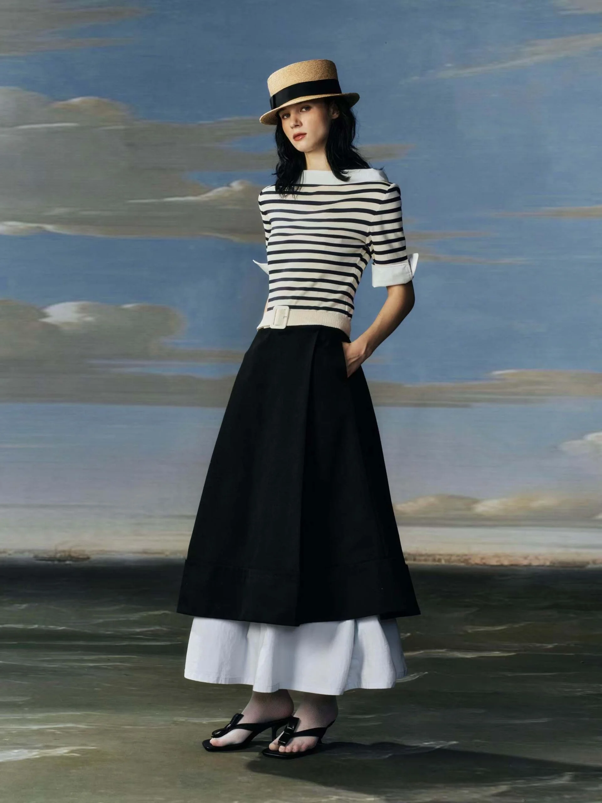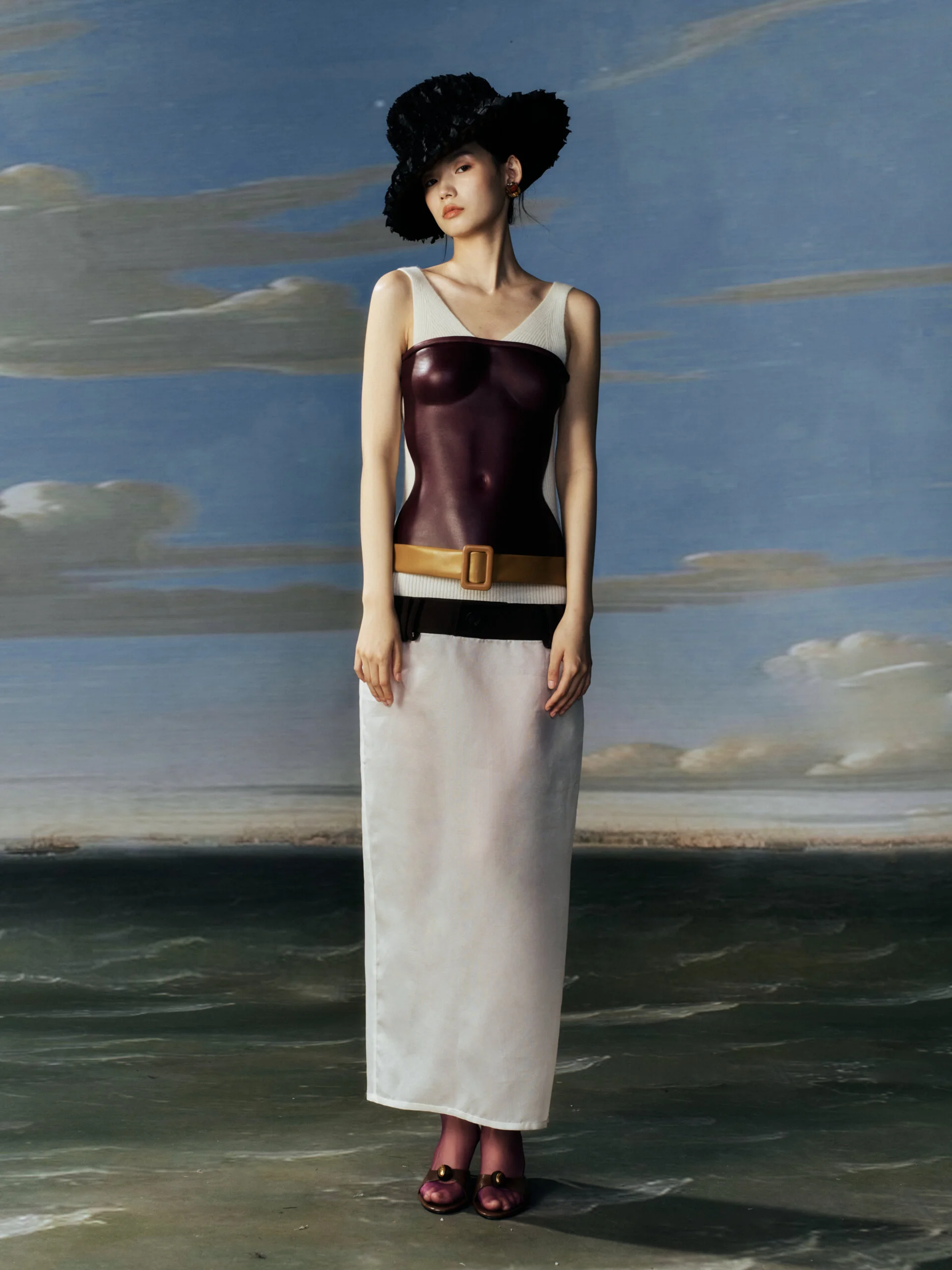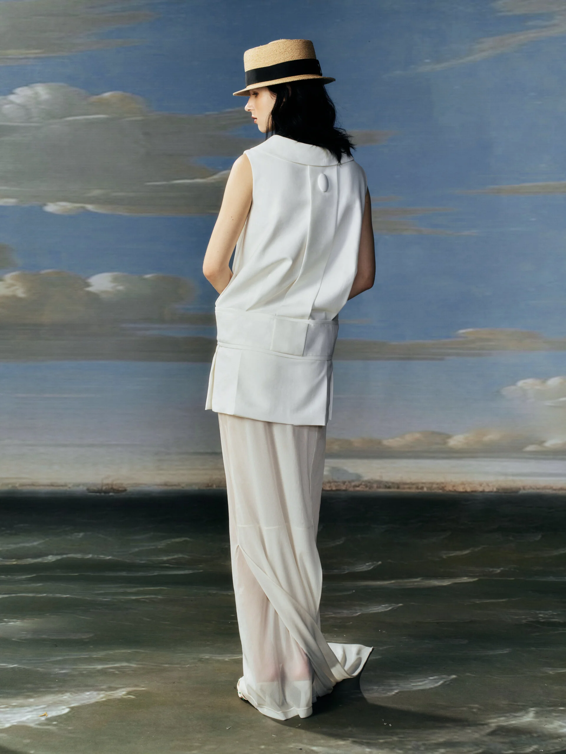 自小接觸繪畫,並於大學主修藝術,長年的浸潤讓她在設計上既不忽略實穿性,也不放棄對美感的堅持。服裝線條中隱約流露出雕塑感,女性輪廓則被處理得克制而內斂,不刻意張揚,也不迎合目光,在靜謐之中呈現一種溫和卻堅定的獨特美學。