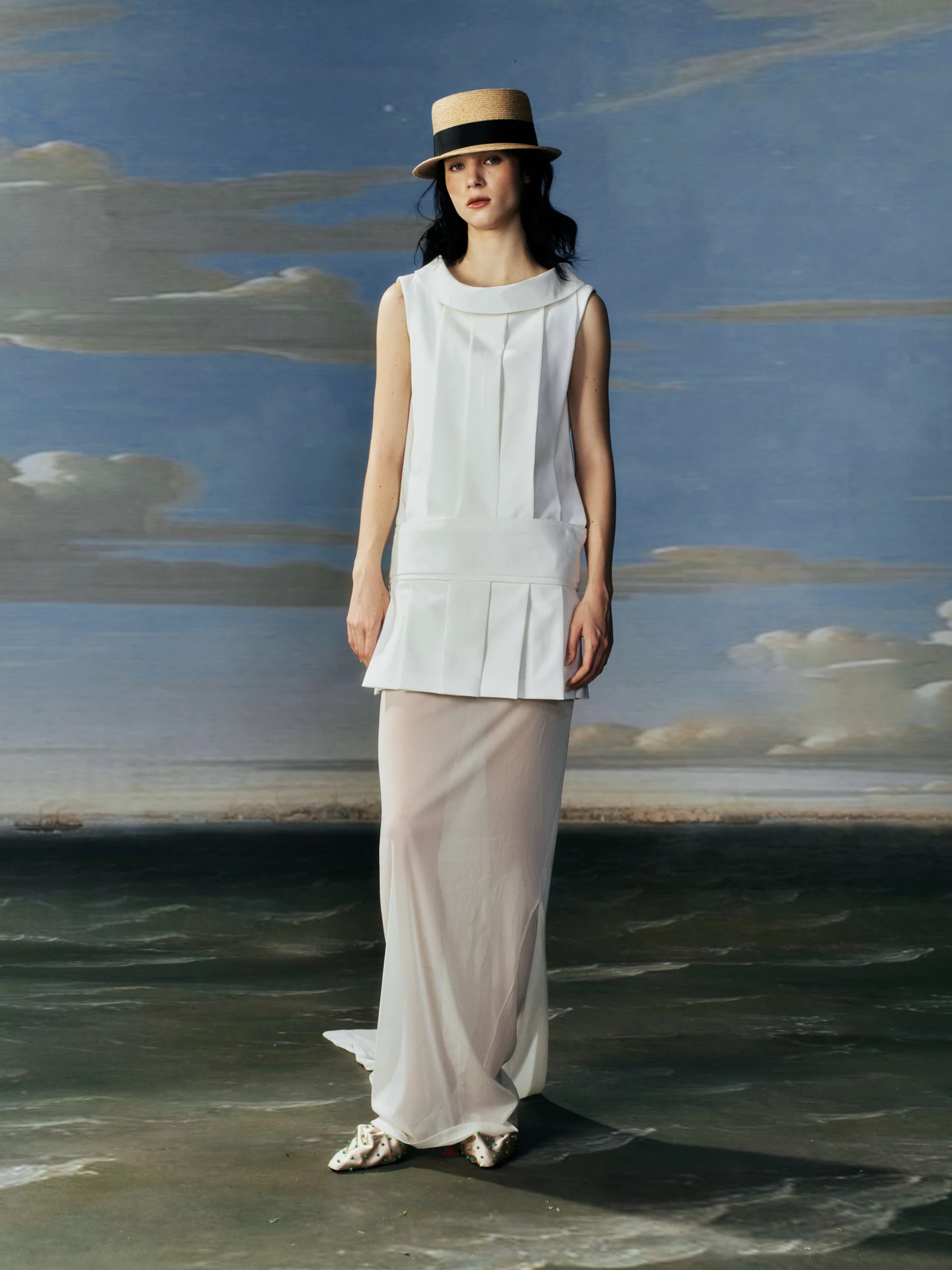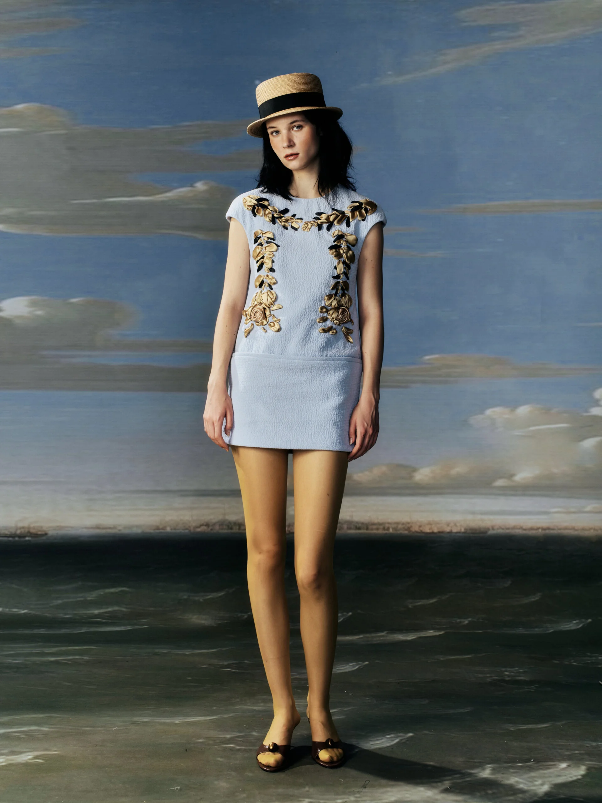 SS26 的靈感來自電影《情人》,改編自 MARGUERITE DURAS 的小說。故事發生在越南,因為我家在廣西,離越南很近,無論氣候、食物、植物,甚至方言,都有相似之處,所以對我來說很有親切感。另外,越南曾是法國殖民地,那種文化混合的狀態也很吸引我。《情人》本身是一個帶有情色氣息的故事,但更打動我的是主角的內在,她年紀很小,但內心非常成熟、冷靜,我會覺得這和我自己有點像。所以這一季我把《情人》的故事和海軍元素、20 年代、法式氛圍、編織工藝以及南方潮濕的環境結合在一起,形成整個系列。